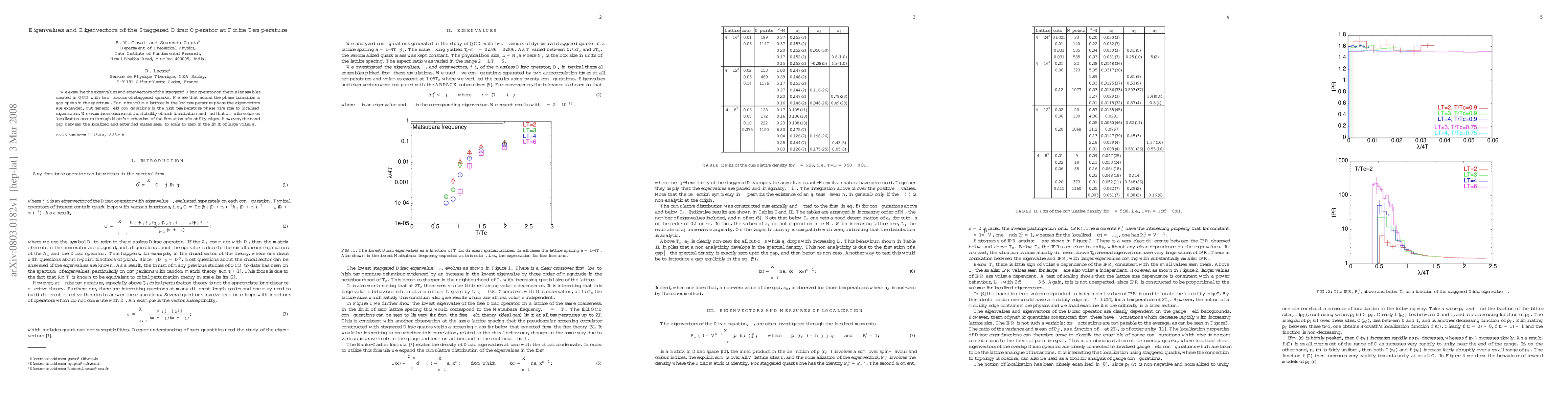 This paper investigates the eigenvalues and eigenvectors of the staggered Dirac operator in QCD with two staggered quark flavors, revealing a gap opening in the spectrum across the phase transition. In low-temperature phases, eigenvectors are extended, while high-temperature phases exhibit localized eigenstates due to Mott's mechanism, though the band gap vanishes in large volumes.