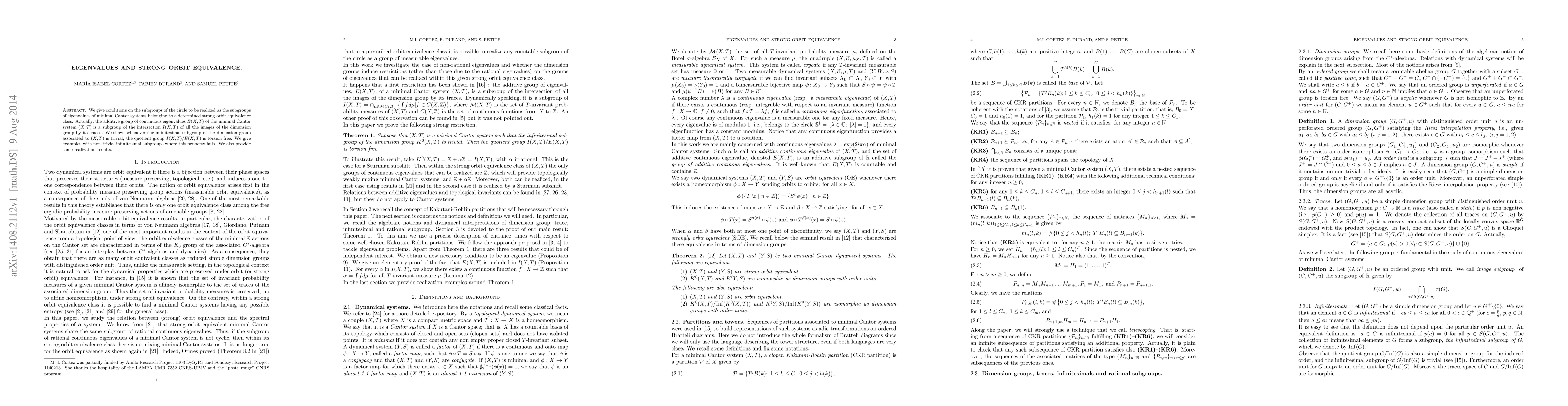 We give conditions on the subgroups of the circle to be realized as the subgroups of eigenvalues of minimal Cantor systems belonging to a determined strong orbit equivalence class. Actually, the additive group of continuous eigenvalues E(X,T) of the minimal Cantor system (X,T) is a subgroup of the intersection I(X,T) of all the images of the dimension group by its traces. We show, whenever the infinitesimal subgroup of the dimension group associated to (X,T) is trivial, the quotient group I(X,T)/E(X,T) is torsion free. We give examples with non trivial infinitesimal subgroups where this property fails. We also provide some realization results.
