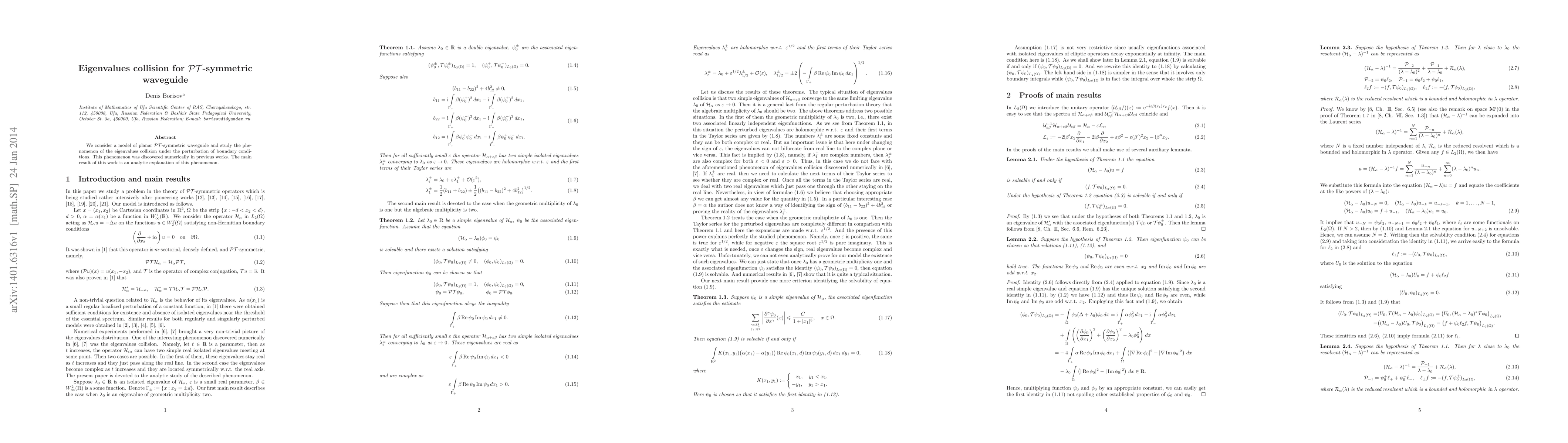 This paper analytically explains the eigenvalues collision phenomenon in a planar PT-symmetric waveguide under boundary condition perturbations, previously observed numerically, providing a theoretical understanding of this behavior.