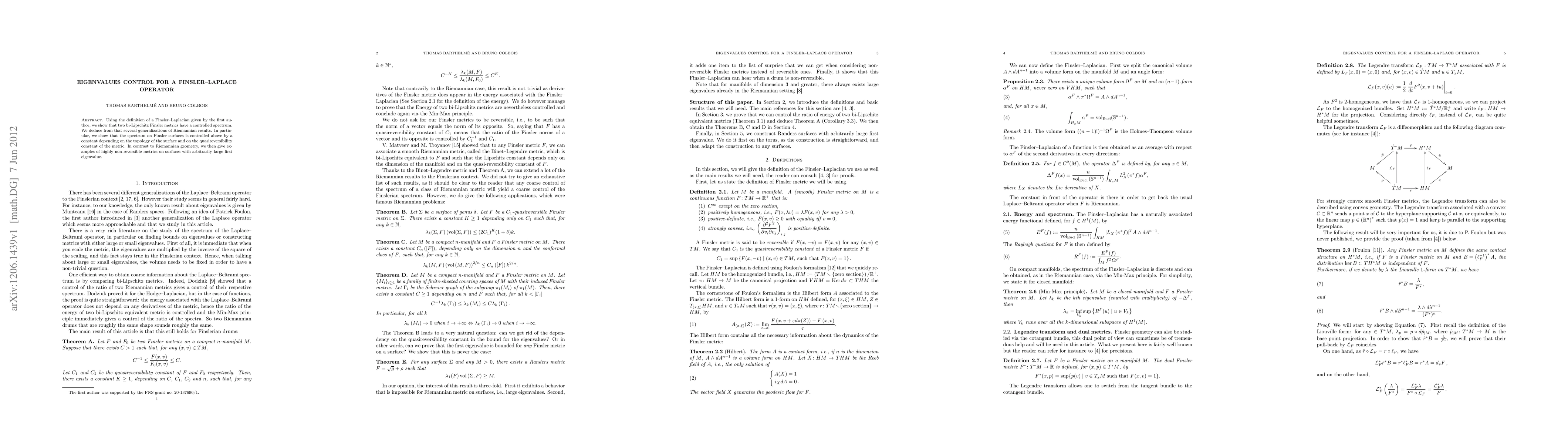 Researchers show that eigenvalues of a Finsler-Laplace operator have a controlled spectrum, with implications for understanding metrics on surfaces, including the impact of quasireversibility constants.