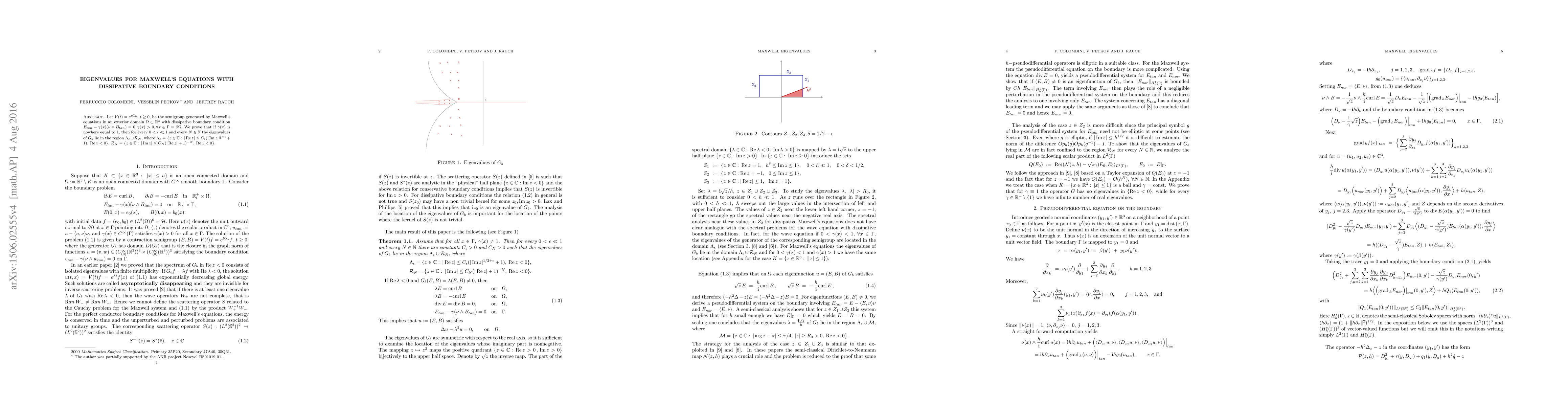 Researchers prove that eigenvalues of Maxwell's equations with dissipative boundary conditions lie within specific regions of complex numbers, depending on a parameter epsilon and natural number N.