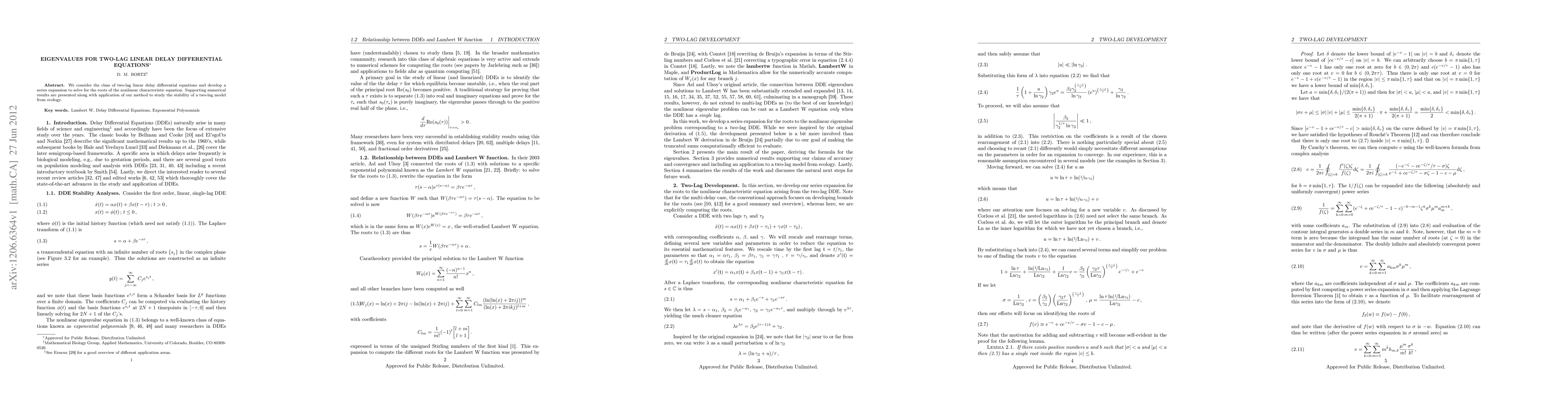 This paper develops a series expansion method to determine the eigenvalues for two-lag linear delay differential equations, providing numerical results and applying the method to analyze the stability of an ecological two-lag model.