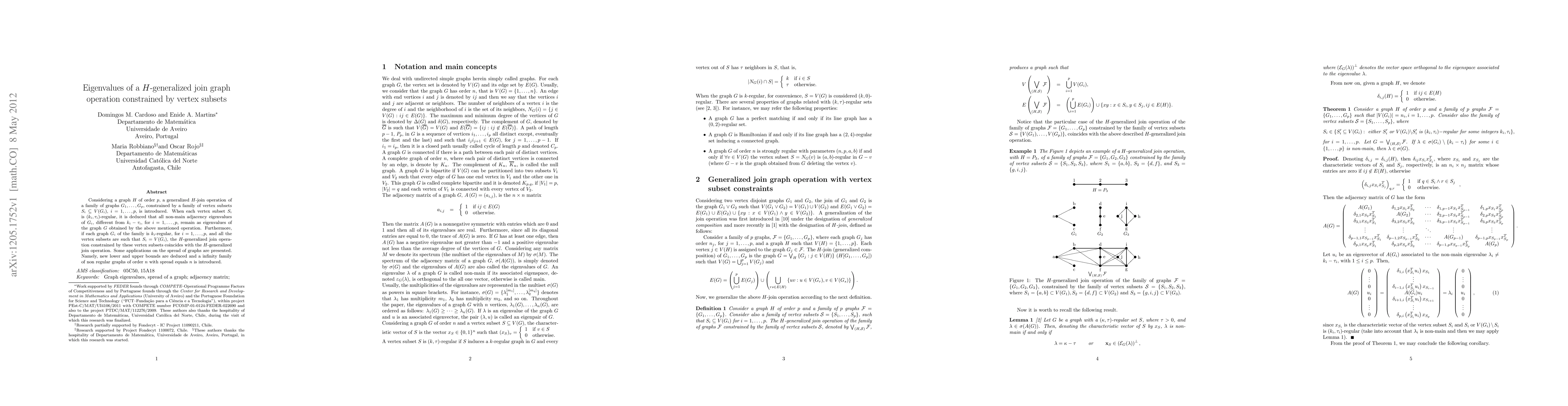 Considering a graph $H$ of order $p$, a generalized $H$-join operation of a family of graphs $G_1,..., G_p$, constrained by a family of vertex subsets $S_i \subseteq V(G_i)$, $i=1,..., p,$ is introduced. When each vertex subset $S_i$ is $(k_i,\tau_i)$-regular, it is deduced that all non-main adjacency eigenvalues of $G_i$, different from $k_i-\tau_i$, for $i=1,..., p,$ remain as eigenvalues of the graph $G$ obtained by the above mentioned operation. Furthermore, if each graph $G_i$ of the family is $k_i$-regular, for $i=1,..., p$, and all the vertex subsets are such that $S_i=V(G_i)$, the $H$-generalized join operation constrained by these vertex subsets coincides with the $H$-generalized join operation. Some applications on the spread of graphs are presented. Namely, new lower and upper bounds are deduced and a infinity family of non regular graphs of order $n$ with spread equals $n$ is introduced.
