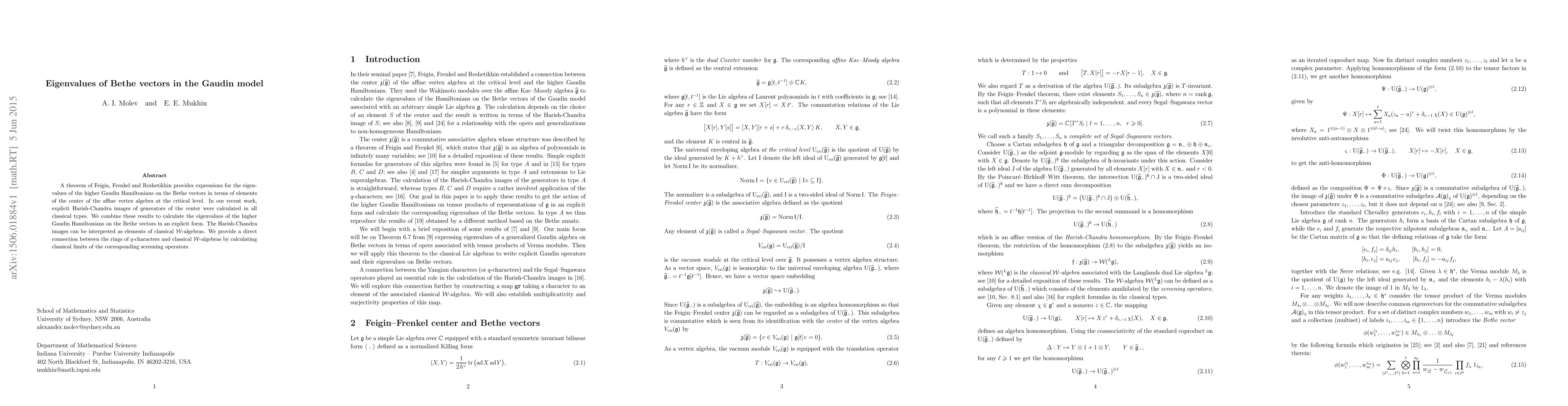 The research provides a new expression for the eigenvalues of higher Gaudin Hamiltonians using Harish-Chandra images and classical W-algebras.