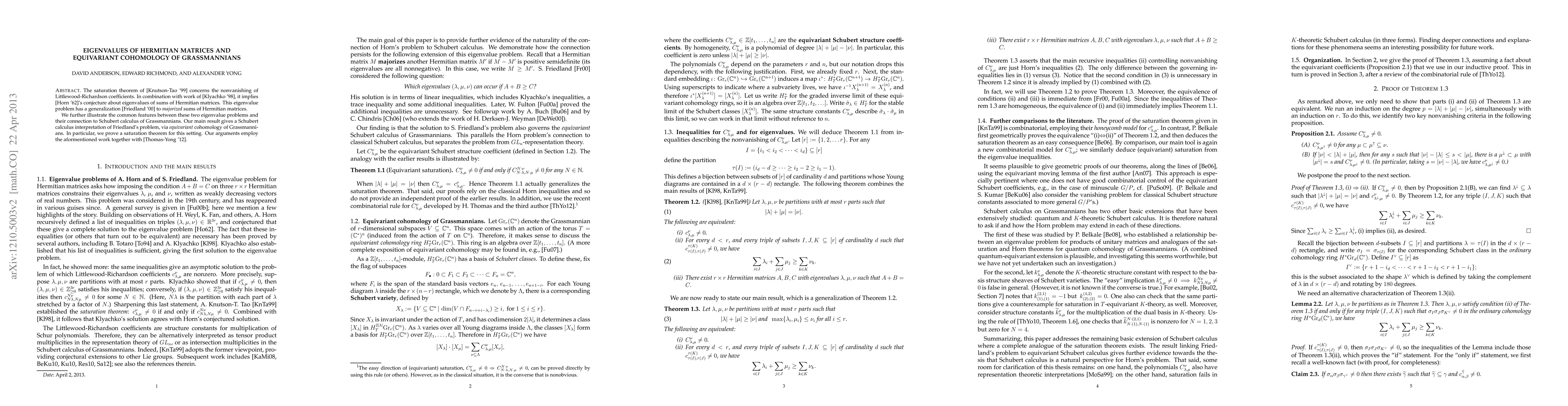The work is novel in its integration of equivariant cohomology with Schubert calculus to address eigenvalue problems, offering a fresh perspective on Horn's conjecture and its generalizations.