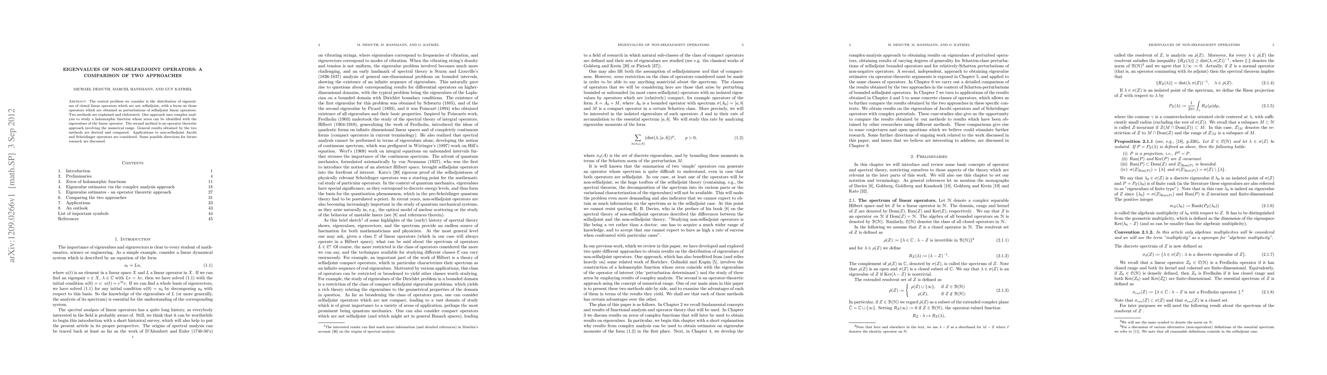 This paper compares two methods for analyzing the eigenvalue distribution of non-selfadjoint linear operators: a complex analysis approach and an operator theoretic method using the numerical range. Both methods are applied to perturbed selfadjoint operators, with results derived and compared, and implications for non-selfadjoint Jacobi and Schrödinger operators discussed.