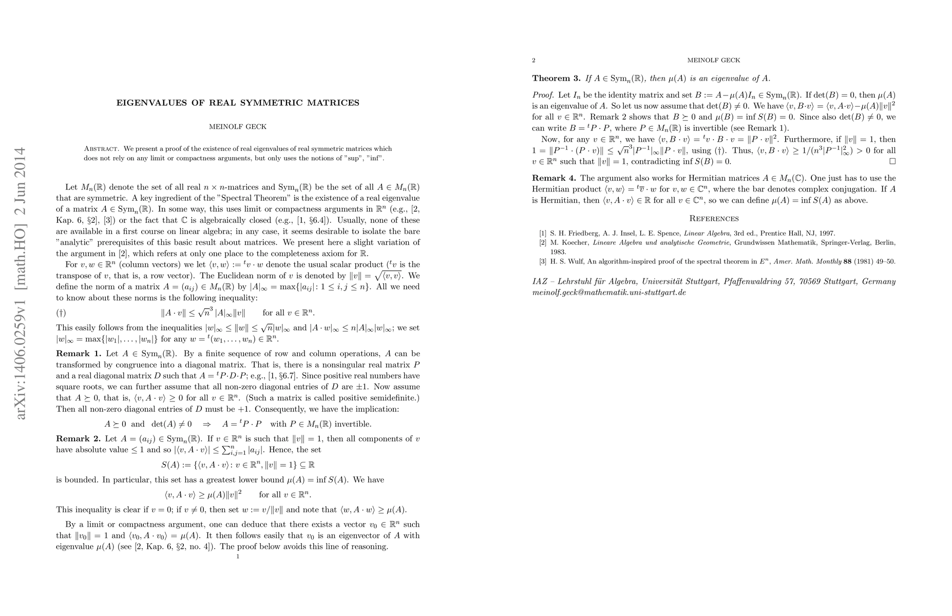 Summary: This paper proves the existence of real eigenvalues for real symmetric matrices using only the concepts of "sup" and "inf" without relying on limit or compactness arguments. This approach provides a novel and straightforward proof method.