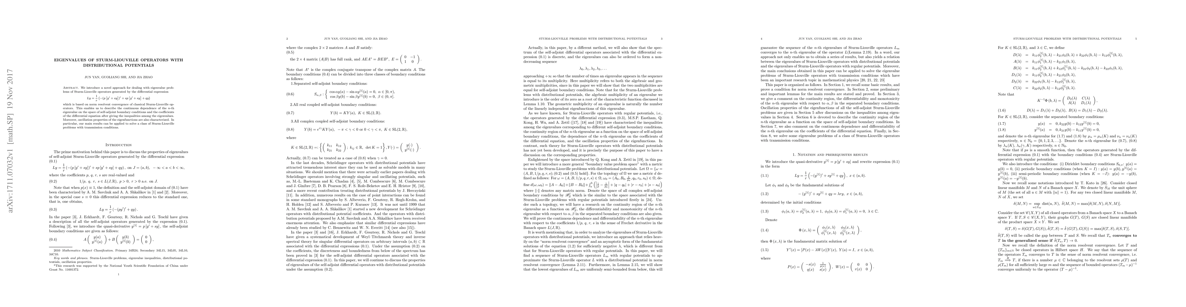 This paper develops a new method for solving eigenvalue problems of Sturm-Liouville operators with distributional potentials, focusing on the continuous dependence of eigenvalues and characterizing oscillation properties of eigenfunctions through norm resolvent convergence. It applies these results to Sturm-Liouville problems with transmission conditions.