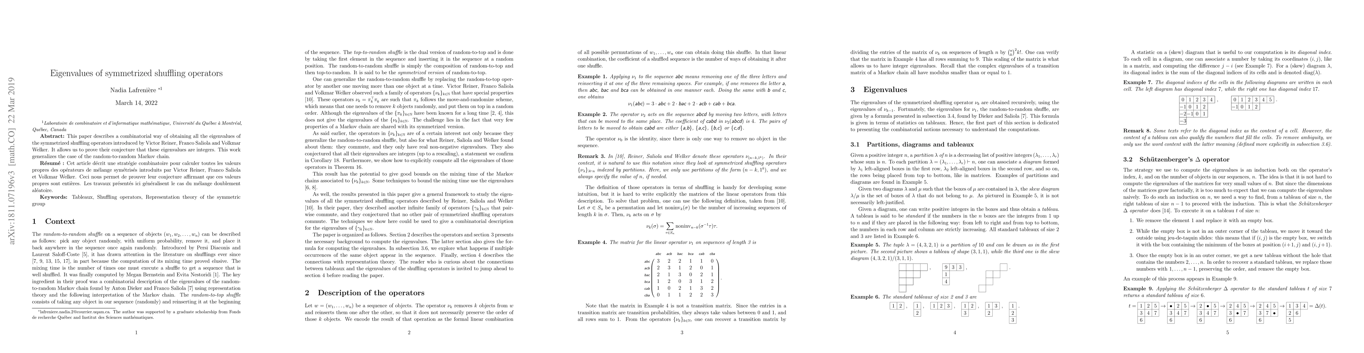 Researchers prove that the eigenvalues of symmetrized shuffling operators are integers, building on a conjecture made by Victor Reiner, Franco Saliola, and Volkmar Welker.