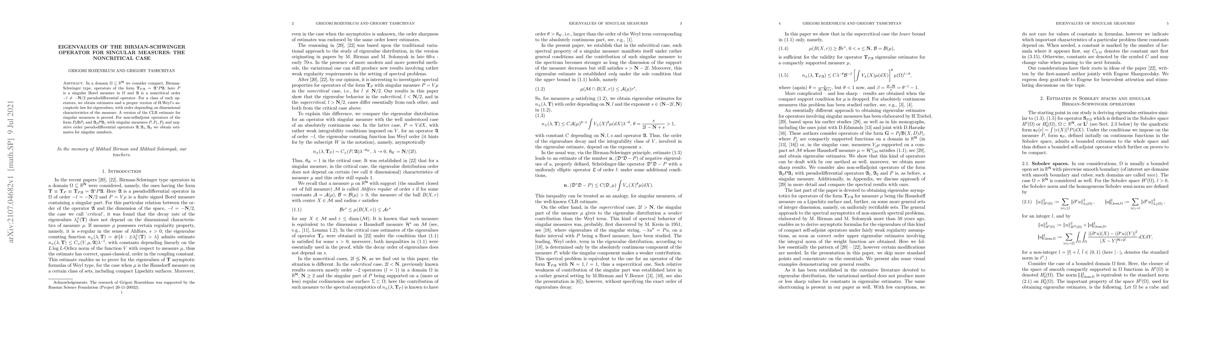 Research finds eigenvalues of Birman-Schwinger operators for singular measures, with estimates and asymptotic laws derived, impacting the study of pseudodifferential operators and their applications.