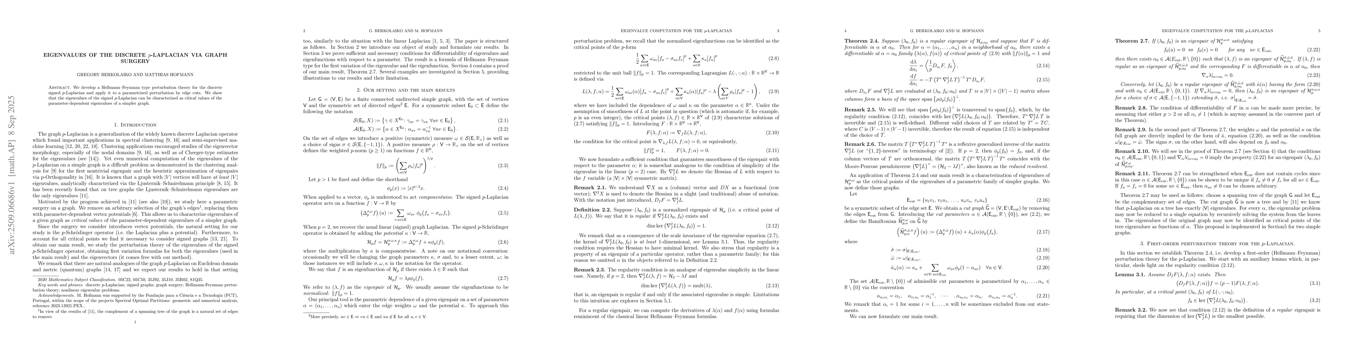 We develop a Hellmann--Feynman type perturbation theory for the discrete signed $p$-Laplacian and apply it to a parametrized perturbation by edge cuts. We show that the eigenvalues of the signed $p$-Laplacian can be characterized as citical values of the parameter-dependent eigenvalues of a simpler graph.