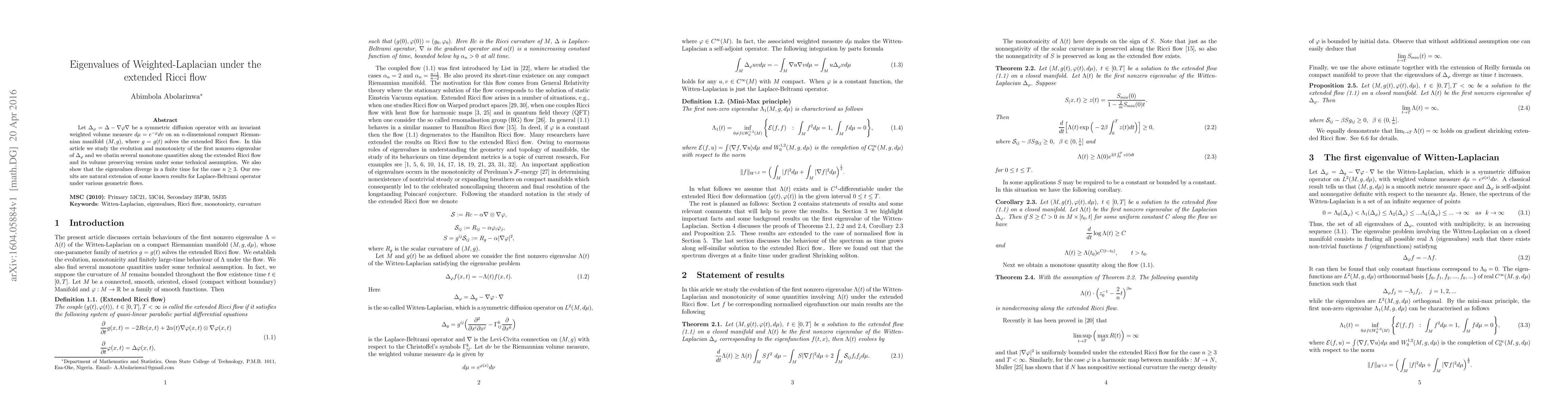 This paper investigates the evolution and monotonicity of the first nonzero eigenvalue of a weighted Laplacian operator $\Delta_\varphi$ on an $n$-dimensional compact Riemannian manifold undergoing extended Ricci flow. The authors show that eigenvalues diverge in finite time for $n \geq 3$ and extend known results for the Laplace-Beltrami operator.