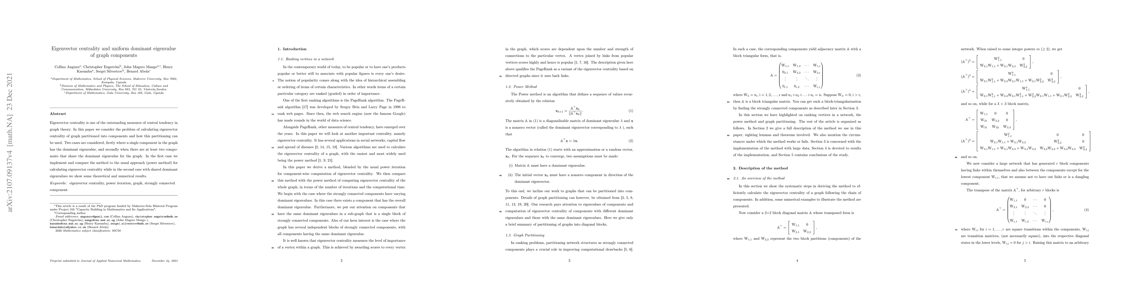 Researchers explore calculating eigenvector centrality in graph components with shared dominant eigenvalues, comparing methods to traditional power iteration method.