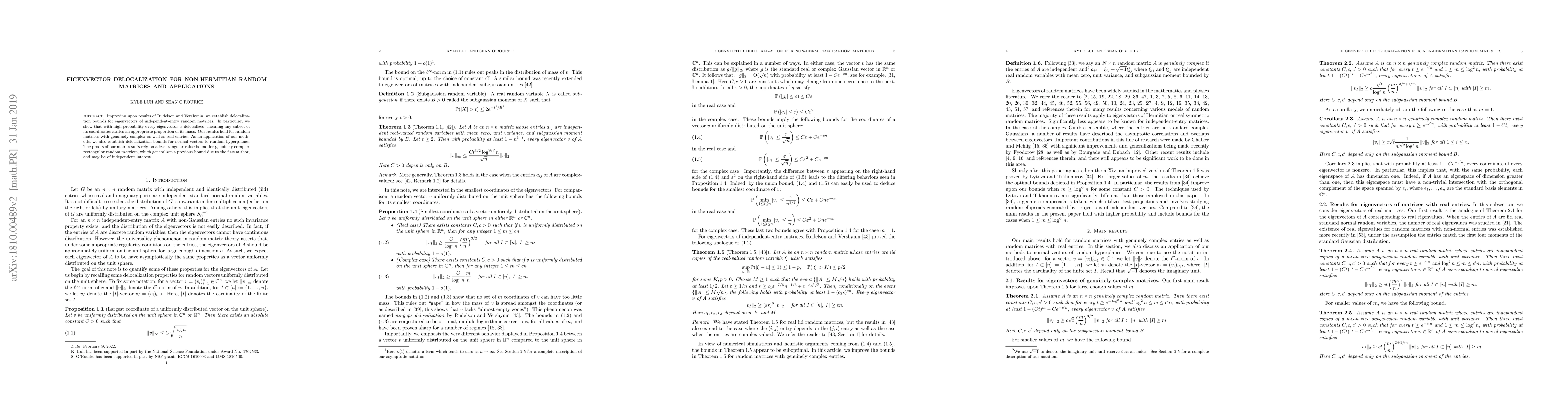 Improving upon results of Rudelson and Vershynin, we establish delocalization bounds for eigenvectors of independent-entry random matrices. In particular, we show that with high probability every eigenvector is delocalized, meaning any subset of its coordinates carries an appropriate proportion of its mass. Our results hold for random matrices with genuinely complex as well as real entries. In both cases, our bounds match numerical simulations, up to lower order terms, indicating the optimality of our results. As an application of our methods, we also establish delocalization bounds for normal vectors to random hyperplanes. The proofs of our main results rely on a least singular value bound for genuinely complex rectangular random matrices, which generalizes a previous bound due to the first author, and may be of independent interest.
