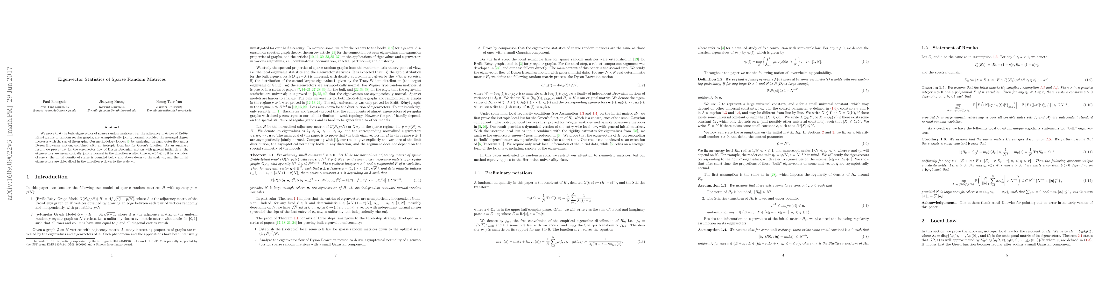 This paper demonstrates that the eigenvectors of sparse random matrices, such as those from Erdős-Rényi or random regular graphs, exhibit asymptotic joint normality under certain degree conditions. The authors use Dyson Brownian motion analysis and an isotropic local law to achieve this result.