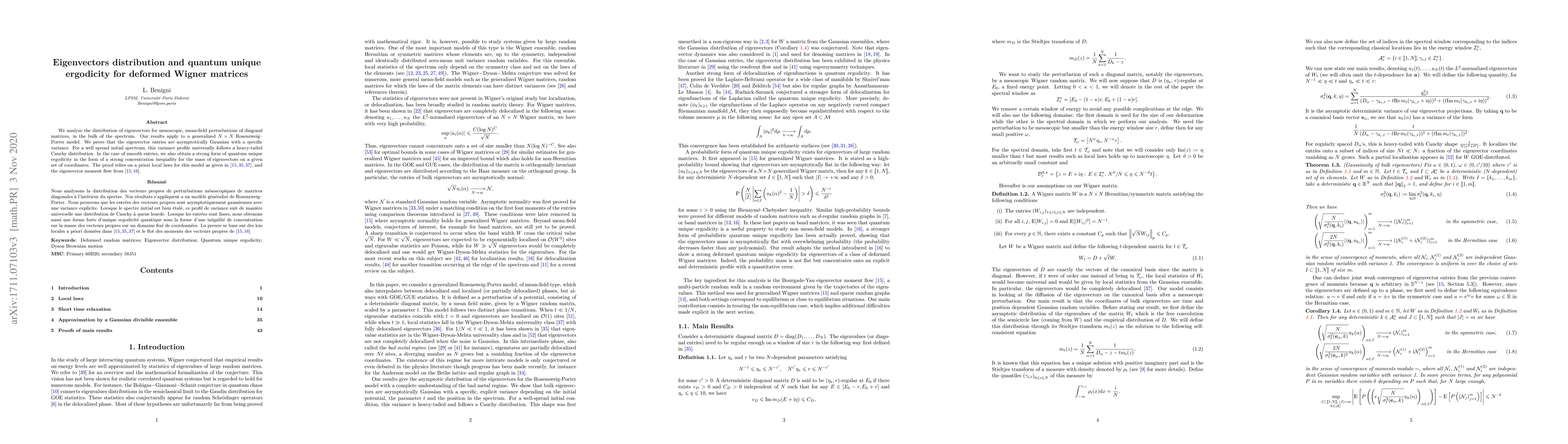 This paper studies the eigenvector distribution in mesoscopic perturbations of diagonal matrices, showing they become asymptotically Gaussian. It establishes a universal heavy-tailed Cauchy distribution for the variance profile in such cases, and proves a strong form of quantum unique ergodicity under smooth conditions.
