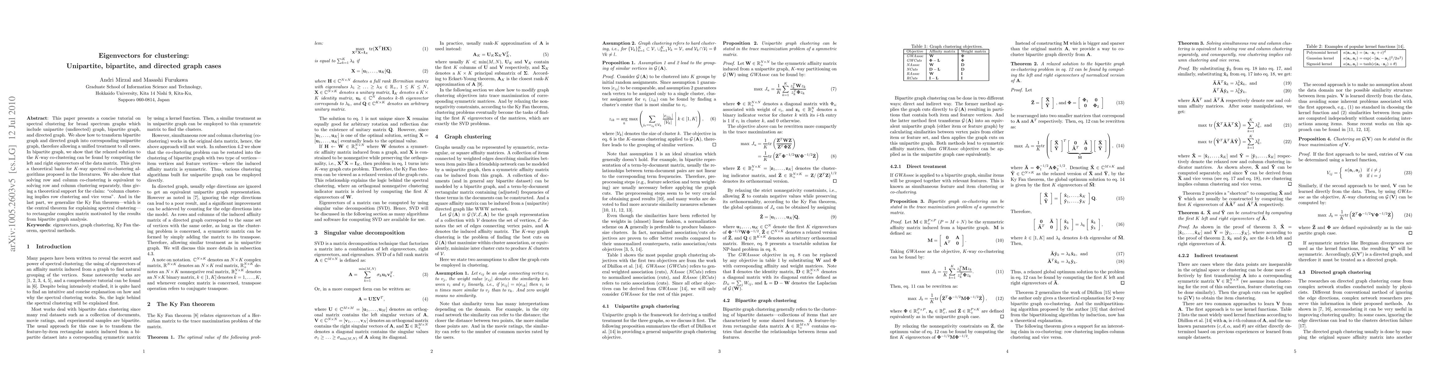 The paper extends the Ky Fan theorem to rectangular complex matrices and provides a unified treatment for spectral clustering on unipartite, bipartite, and directed graphs.
