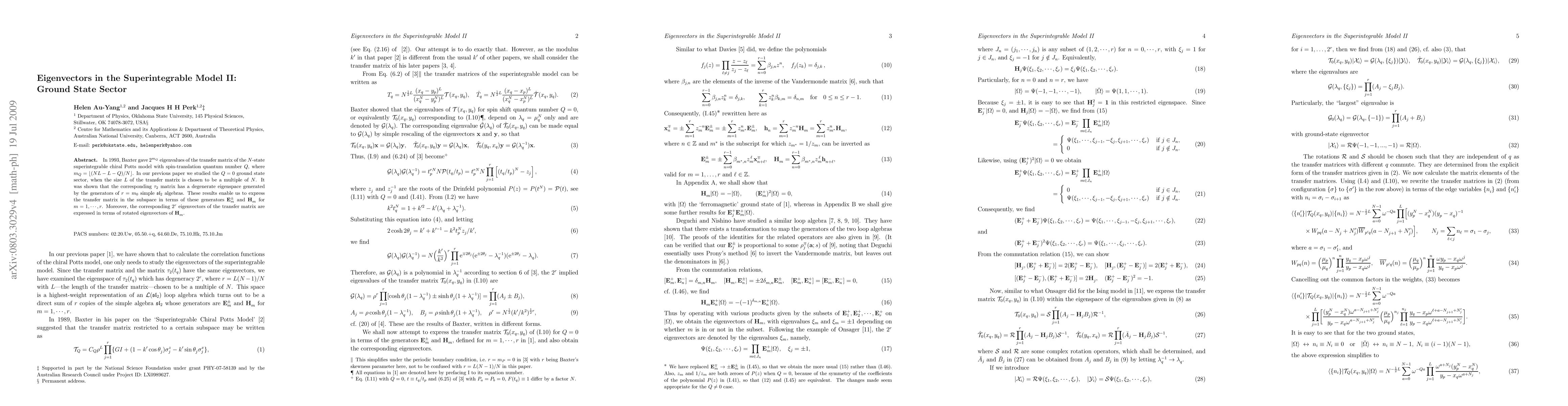 In 1993, Baxter gave $2^{m_Q}$ eigenvalues of the transfer matrix of the $N$-state superintegrable chiral Potts model with spin-translation quantum number $Q$, where $m_Q=\lfloor(NL-L-Q)/N\rfloor$. In our previous paper we studied the Q=0 ground state sector, when the size $L$ of the transfer matrix is chosen to be a multiple of $N$. It was shown that the corresponding $\tau_2$ matrix has a degenerate eigenspace generated by the generators of $r=m_0$ simple $sl_2$ algebras. These results enable us to express the transfer matrix in the subspace in terms of these generators $E_m^{\pm}$ and $H_m$ for $m=1,...,r$. Moreover, the corresponding $2^r$ eigenvectors of the transfer matrix are expressed in terms of rotated eigenvectors of $H_m$.