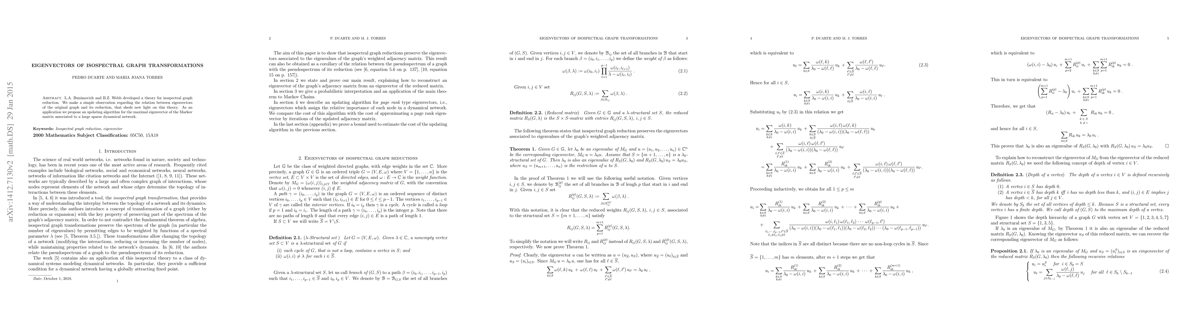 This paper explores the relationship between eigenvectors of an original graph and its isospectral reduction, providing new insights into the theory developed by Bunimovich and Webb. It also proposes an algorithm to update the maximal eigenvector of the Markov matrix for large sparse dynamical networks.