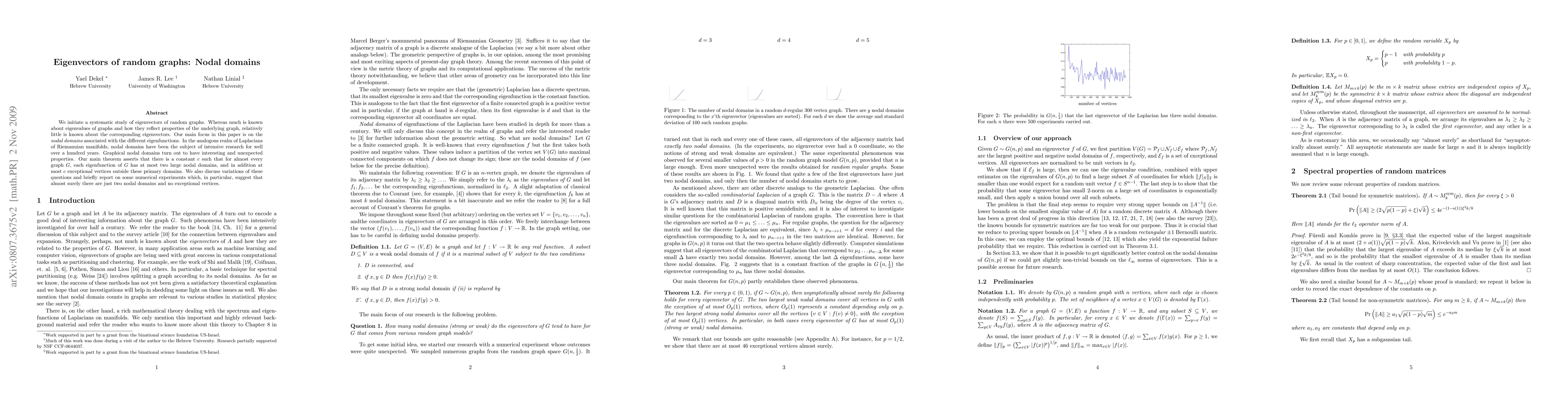 The paper systematically studies eigenvectors of random graphs, focusing on nodal domains, which have been extensively researched in the context of Riemannian manifold Laplacians.