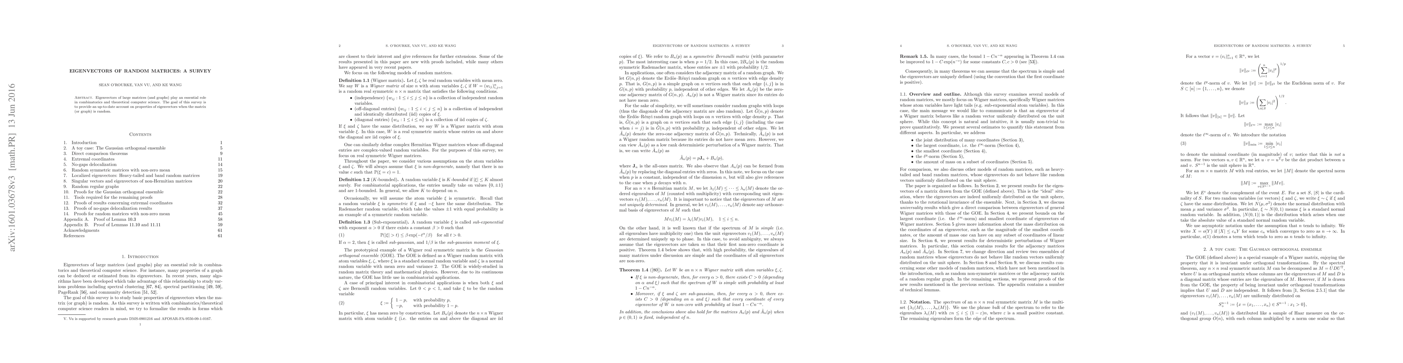 Eigenvectors of large matrices (and graphs) play an essential role in combinatorics and theoretical computer science. The goal of this survey is to provide an up-to-date account on properties of eigenvectors when the matrix (or graph) is random.