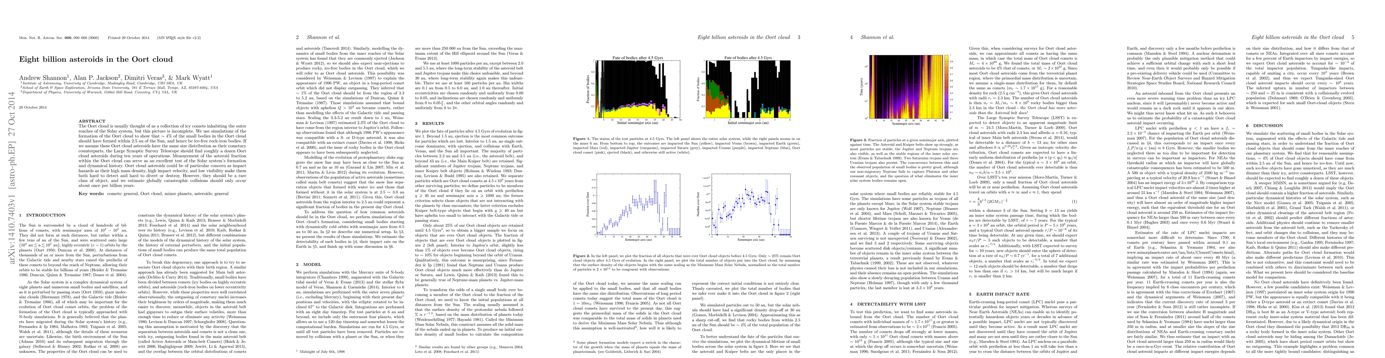 This paper proposes that the Oort cloud contains a significant population of ice-free rock-iron asteroids, estimated at eight billion, which could pose a rare but notable impact hazard. The study suggests that the Large Synoptic Survey Telescope may detect a dozen of these asteroids over ten years, offering insights into the Solar system's formation and reducing the frequency of catastrophic impacts to once per billion years.