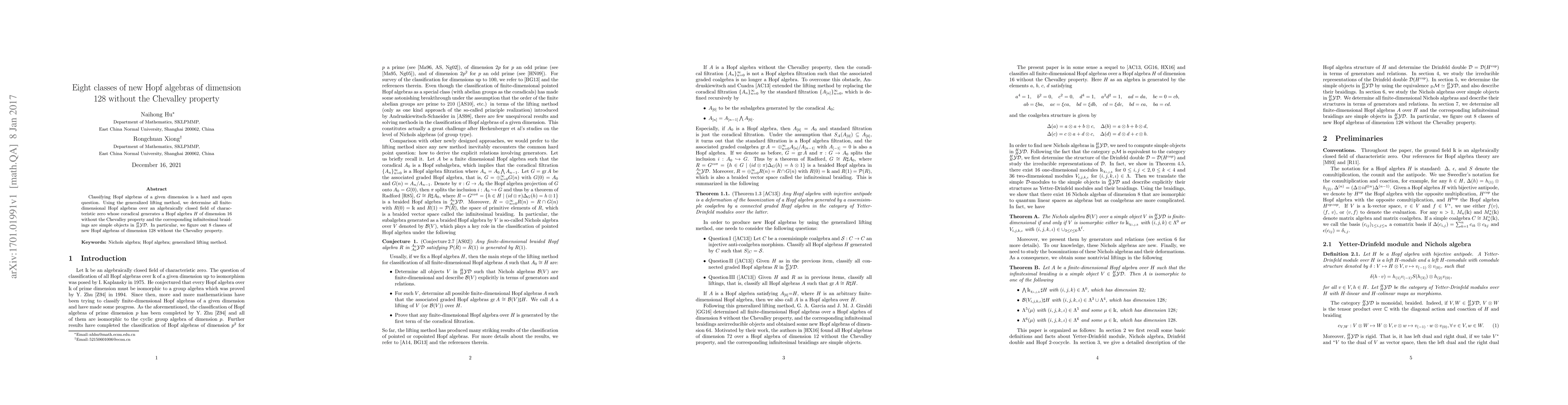 This paper identifies eight new classes of finite-dimensional Hopf algebras of dimension $128$ using a generalized lifting method, focusing on those whose coradical has dimension $16$ and lacks the Chevalley property. These Hopf algebras exhibit simple infinitesimal braidings.