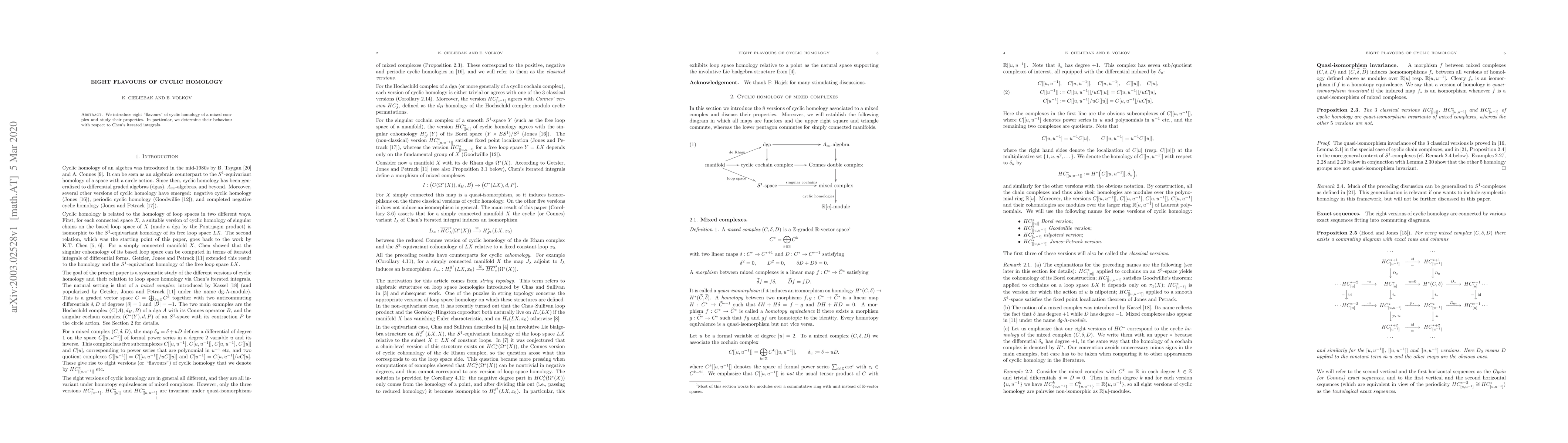 We introduce eight versions of cyclic homology of a mixed complex and study their properties. In particular, we determine their behaviour with respect to Chen iterated integrals.