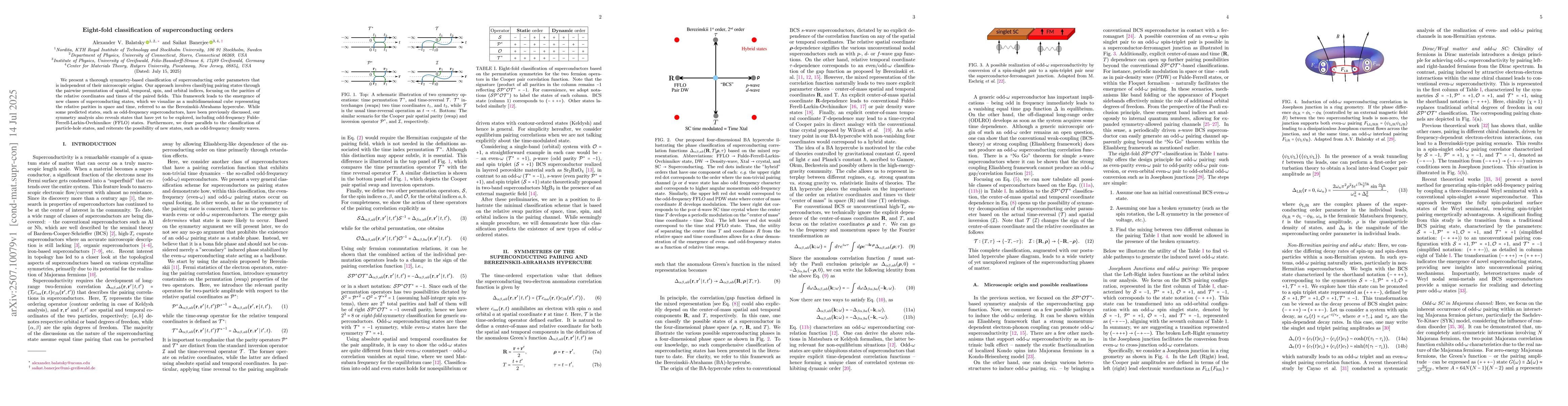 We present a thorough symmetry-based classification of superconducting order parameters that is independent of their microscopic origins. Our approach involves classifying pairing states through the pairwise permutation of spatial, temporal, spin, and orbital indices, focusing on the parities of the relative coordinates and times of the paired fields. This framework leads to the emergence of new classes of superconducting states, which we visualize as a multidimensional cube representing the relative parities in space and time, referred to as the Berezinskii-Abrahams hypercube. While some predicted states, such as odd-frequency superconductors, have been previously discussed, our symmetry analysis also reveals states that have yet to be explored, including odd-frequency Fulde-Ferrell-Larkin-Ovchinnikov (FFLO) states. Furthermore, we draw parallels to the classification of particle-hole states, and reiterate the possibility of new states, such as odd-frequency density waves.