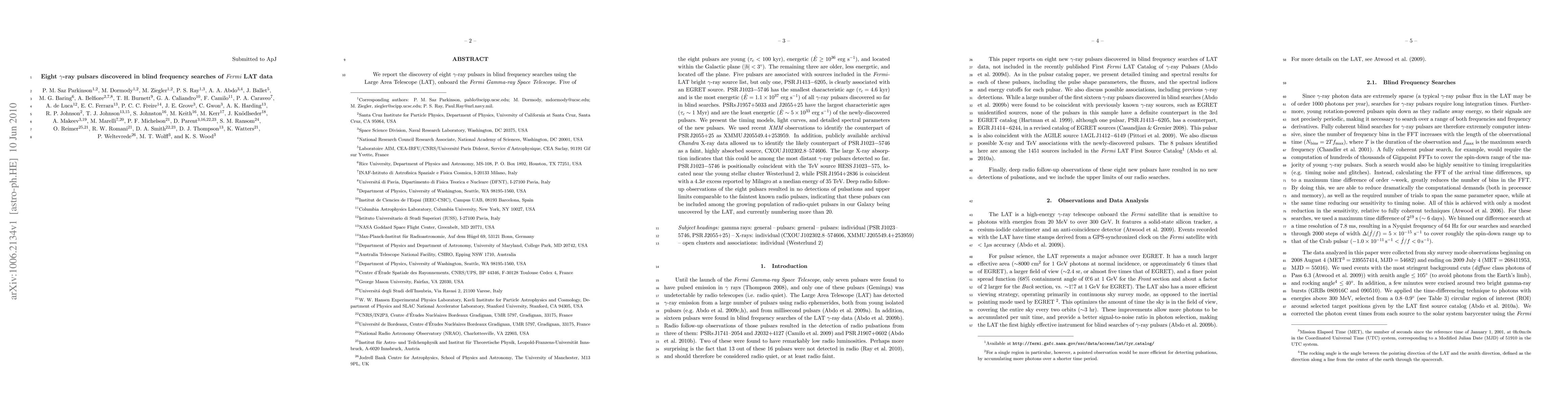 Eight gamma-ray pulsars were discovered in blind frequency searches of Fermi LAT data, including a highly energetic young pulsar with the smallest characteristic age ever recorded.