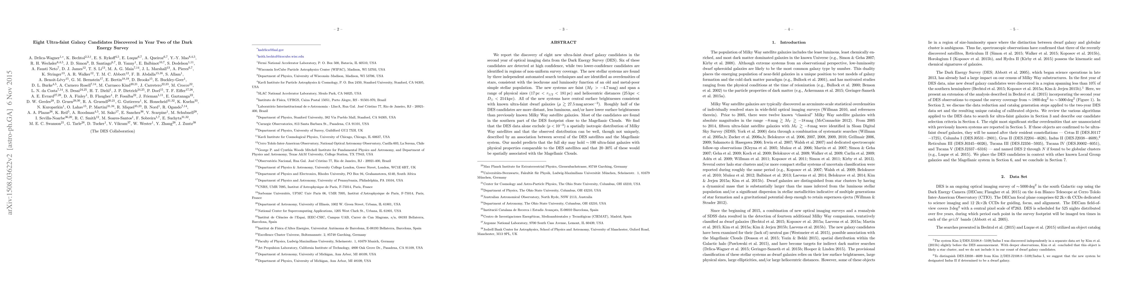 The Dark Energy Survey (DES) discovered eight new ultra-faint dwarf galaxy candidates in its second year, with six detected at high confidence. These faint systems, spanning distances and sizes, suggest a non-isotropic distribution of Milky Way satellites, with many linked to the Magellanic Clouds.