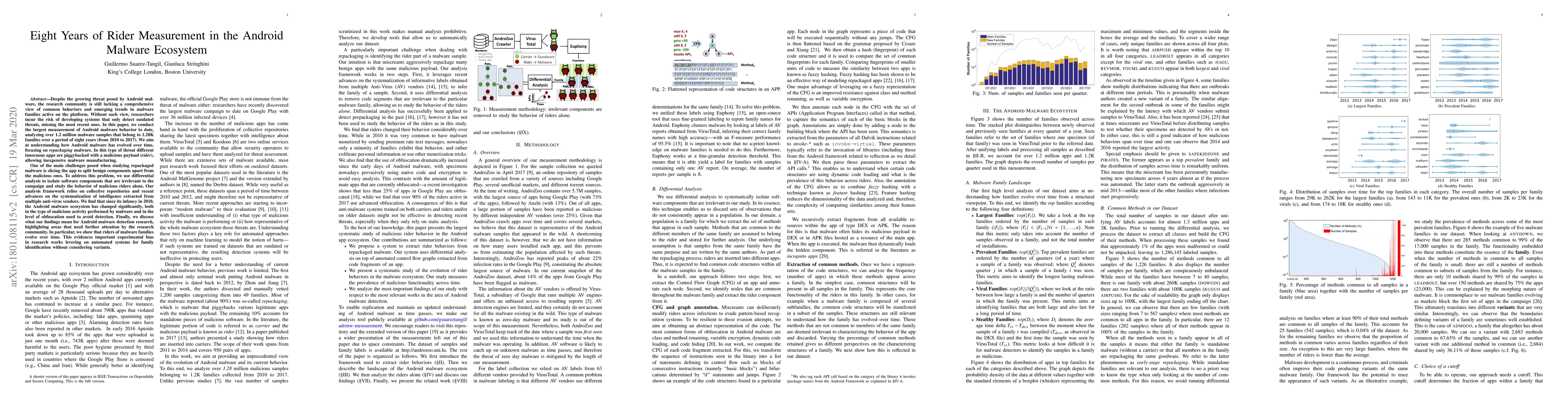 This paper analyzes over 1.2 million Android malware samples from 2010 to 2017 to understand the evolution of malware behaviors, particularly focusing on repackaged threats. The study reveals significant changes in malware activity and obfuscation techniques, and proposes a differential analysis framework to isolate malicious components for better detection.