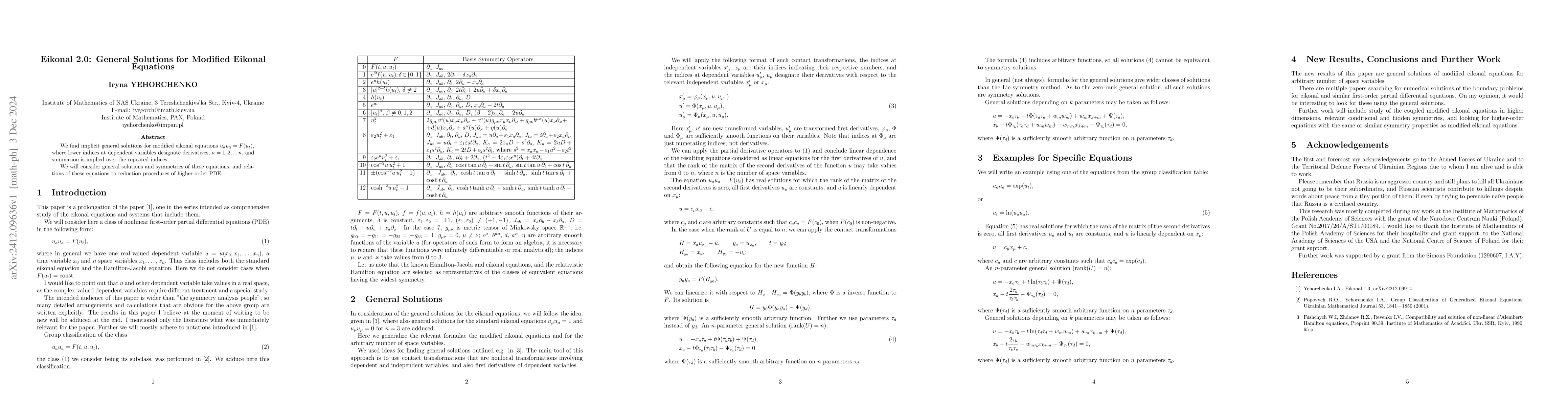 This paper presents implicit general solutions for modified eikonal equations of the form $u_a u_a=F(u_t)$, exploring the symmetries and properties of these solutions. The research focuses on the broader implications and applications of these equations in mathematical physics.