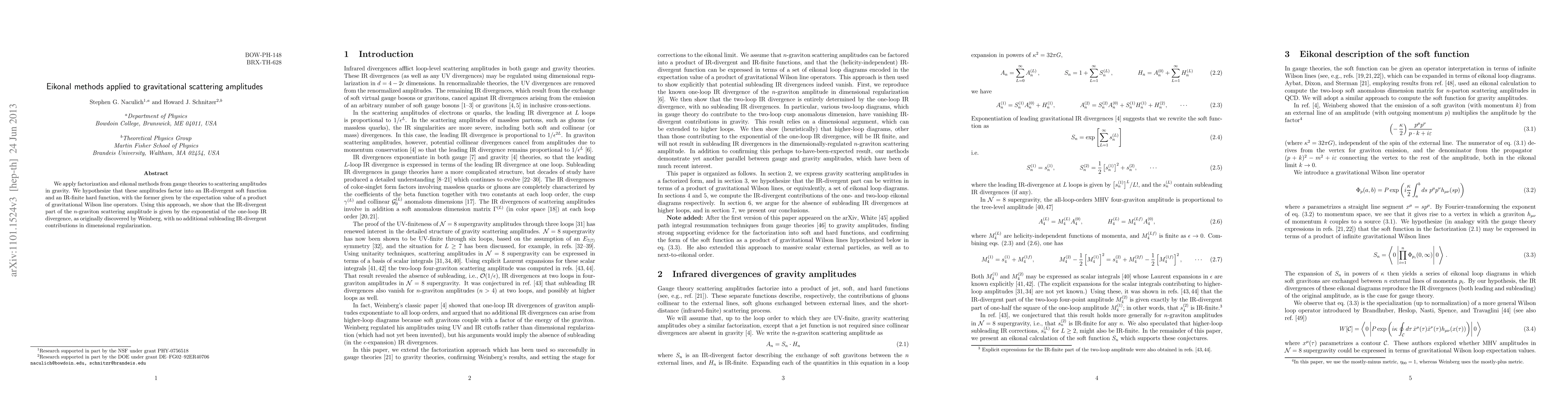 This paper applies eikonal methods from gauge theories to gravitational scattering amplitudes, proposing that these amplitudes factor into an IR-divergent soft function and an IR-finite hard function. It confirms that the IR-divergent part of the n-graviton scattering amplitude follows Weinberg's one-loop IR divergence, without additional subleading contributions.
