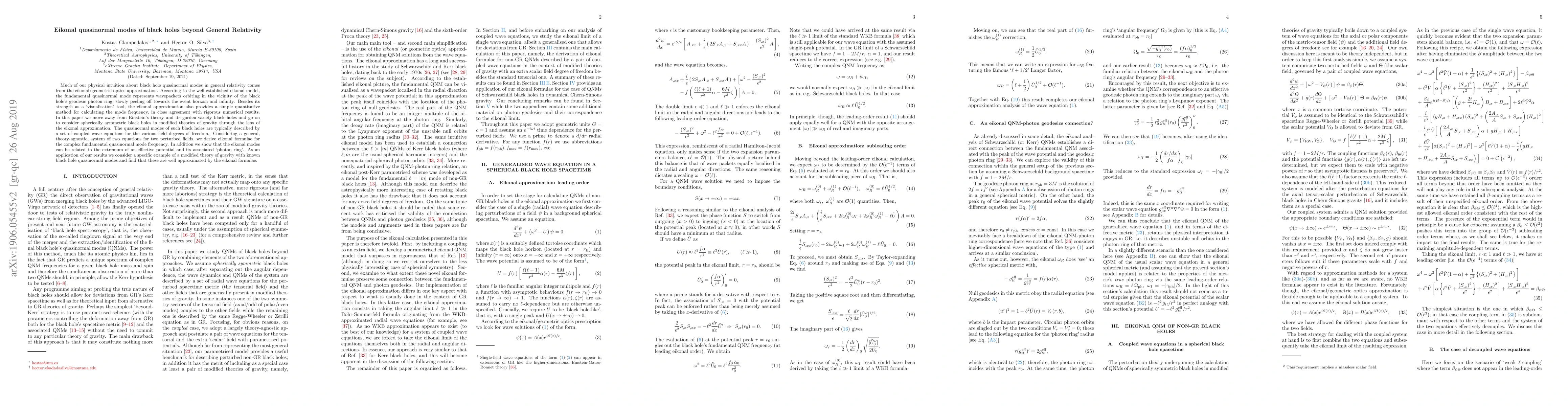 Much of our physical intuition about black hole quasinormal modes in general relativity comes from the eikonal/geometric optics approximation. According to the well-established eikonal model, the fundamental quasinormal mode represents wavepackets orbiting in the vicinity of the black hole's geodesic photon ring, slowly peeling off towards the event horizon and infinity. Besides its strength as a "visualisation" tool, the eikonal approximation also provides a simple quantitative method for calculating the mode frequency, in close agreement with rigorous numerical results. In this paper we move away from Einstein's theory and its garden-variety black holes and go on to consider spherically symmetric black holes in modified theories of gravity through the lens of the eikonal approximation. The quasinormal modes of such black holes are typically described by a set of coupled wave equations for the various field degrees of freedom. Considering a general, theory-agnostic, system of two equations for two perturbed fields, we derive eikonal formulae for the complex fundamental quasinormal mode frequency. In addition we show that the eikonal modes can be related to the extremum of an effective potential and its associated "photon ring". As an application of our results we consider a specific example of a modified theory of gravity with known black hole quasinormal modes and find that these are well approximated by the eikonal formulae.