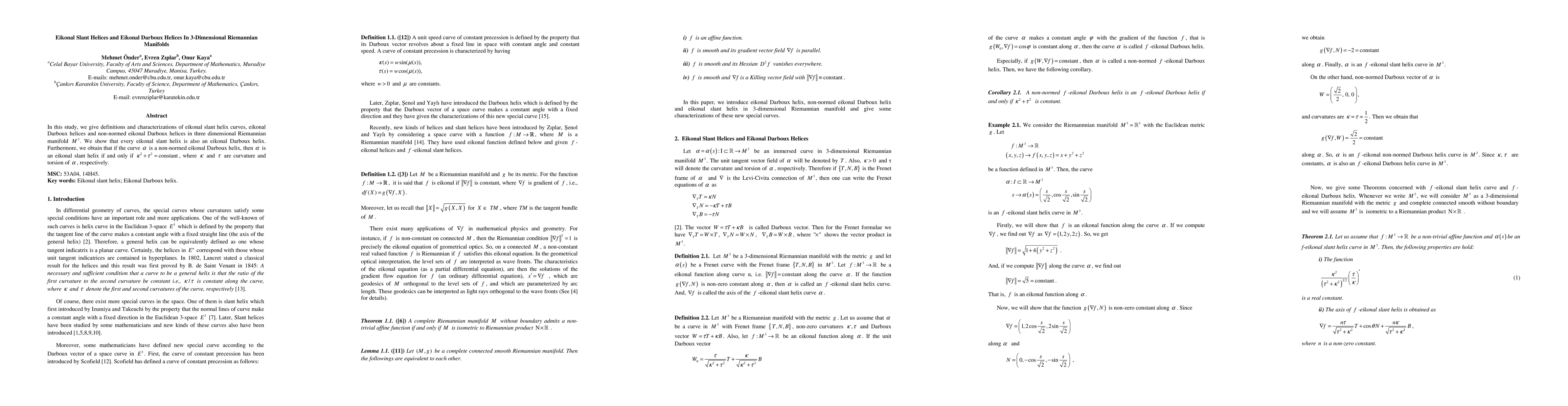 In this study, we give definitions and characterizations of eikonal slant helix curves, eikonal Darboux helices and non-normed eikonal Darboux helices in three dimensional Riemannian manifold 3 M . We show that every eikonal slant helix is also an eikonal Darboux helix. Furthermore, we obtain that if the curve a is a non-normed eikonal Darboux helix, then a is an eikonal slant helix if and only if k 2 +t 2 = constant, where k and t are curvature and torsion of a, respectively.