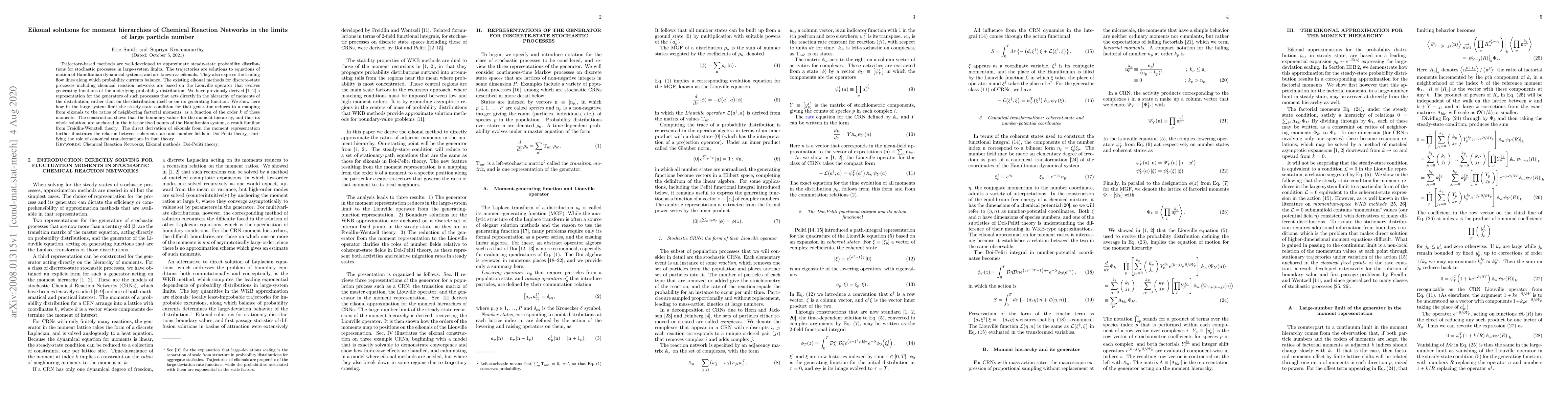Trajectory-based methods are well-developed to approximate steady-state probability distributions for stochastic processes in large-system limits. The trajectories are solutions to equations of motion of Hamiltonian dynamical systems, and are known as eikonals. They also express the leading flow lines along which probability currents balance. The existing eikonal methods for discrete-state processes including chemical reaction networks are based on the Liouville operator that evolves generating functions of the underlying probability distribution. We have previously derived a representation for the generators of such processes that acts directly in the hierarchy of moments of the distribution, rather than on the distribution itself or on its generating function. We show here how in the large-system limit the steady-state condition for that generator reduces to a mapping from eikonals to the ratios of neighboring factorial moments, as a function of the order $k$ of these moments. The construction shows that the boundary values for the moment hierarchy, and thus its whole solution, are anchored in the interior fixed points of the Hamiltonian system, a result familiar from Freidlin-Wenztell theory. The direct derivation of eikonals from the moment representation further illustrates the relation between coherent-state and number fields in Doi-Peliti theory, clarifying the role of canonical transformations in that theory.