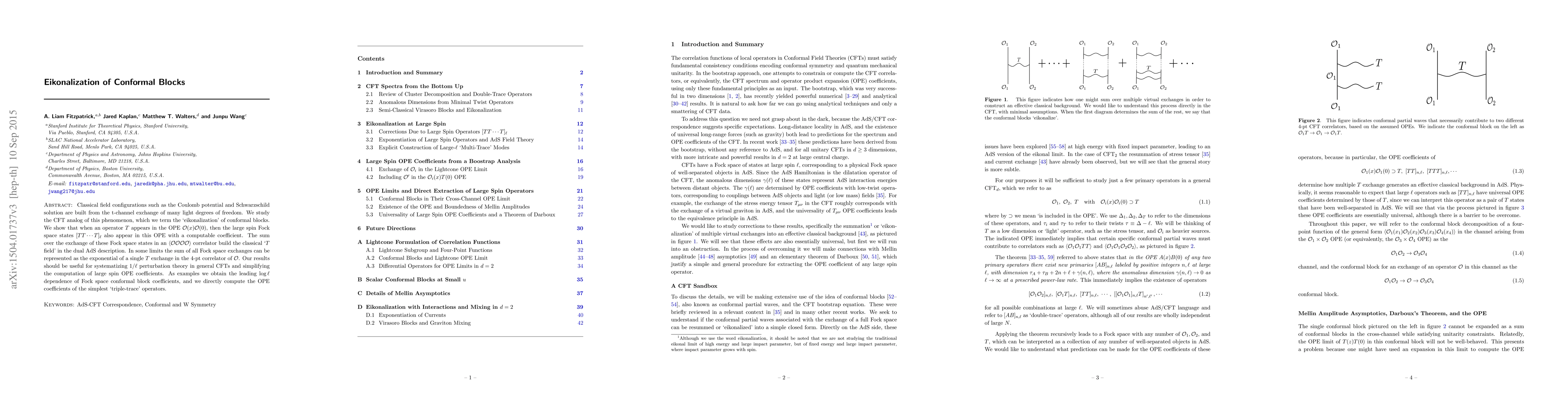 Classical field configurations such as the Coulomb potential and Schwarzschild solution are built from the t-channel exchange of many light degrees of freedom. We study the CFT analog of this phenomenon, which we term the `eikonalization' of conformal blocks. We show that when an operator $T$ appears in the OPE $\mathcal{O}(x) \mathcal{O}(0)$, then the large spin $\ell$ Fock space states $[TT \cdots T]_{\ell}$ also appear in this OPE with a computable coefficient. The sum over the exchange of these Fock space states in an $\langle \mathcal{O} \mathcal{O} \mathcal{O} \mathcal{O} \rangle$ correlator build the classical `$T$ field' in the dual AdS description. In some limits the sum of all Fock space exchanges can be represented as the exponential of a single $T$ exchange in the 4-pt correlator of $\mathcal{O}$. Our results should be useful for systematizing $1/\ell$ perturbation theory in general CFTs and simplifying the computation of large spin OPE coefficients. As examples we obtain the leading $\log \ell$ dependence of Fock space conformal block coefficients, and we directly compute the OPE coefficients of the simplest `triple-trace' operators.