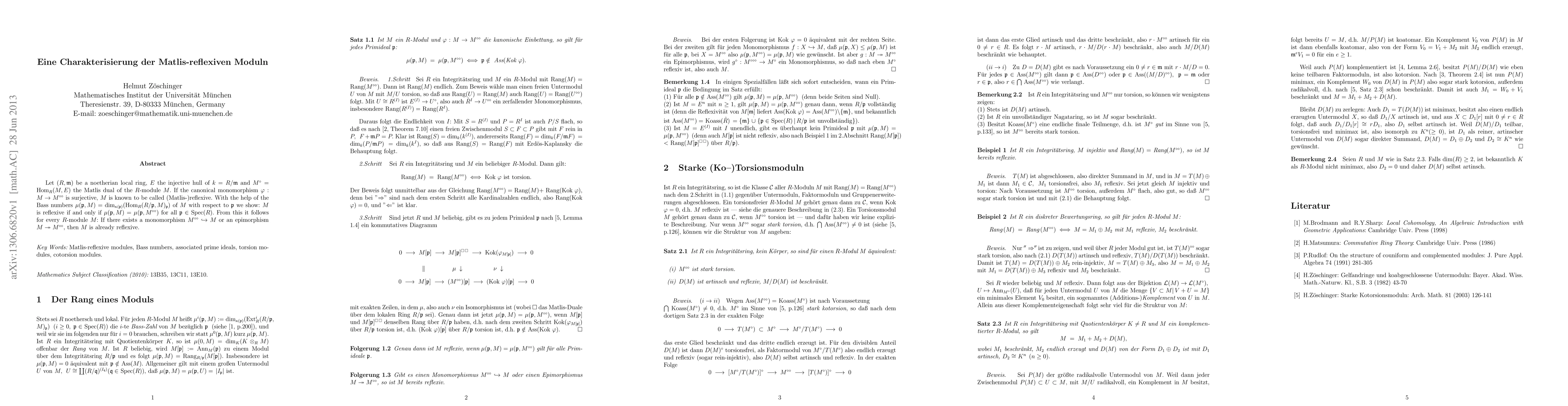 Let $(R,\my)$ be a noetherian local ring, $E$ the injective hull of $k=R/\my$ and $M^\circ=$ Hom$_R(M,E)$ the Matlis dual of the $R$-module $M$. If the canonical monomorphism $\varphi: M \to \moo$ is surjective, $M$ is known to be called (Matlis-)reflexive. With the help of the Bass numbers $\mu(\py,M)=\dim_{\kappa(\py)}($Hom$_R(R/\py,M)_\py)$ of $M$ with respect to $\py$ we show: $M$ is reflexive if and only if $\mu(\py,M)=\mu(\py,\moo)$ for all $\py \in $ Spec$(R)$. From this it follows for every $R$-module $M$: If there exists a monomorphism $\moo \hookrightarrow M$ or an epimorphism $M \twoheadrightarrow \moo$, then $M$ is already reflexive.
