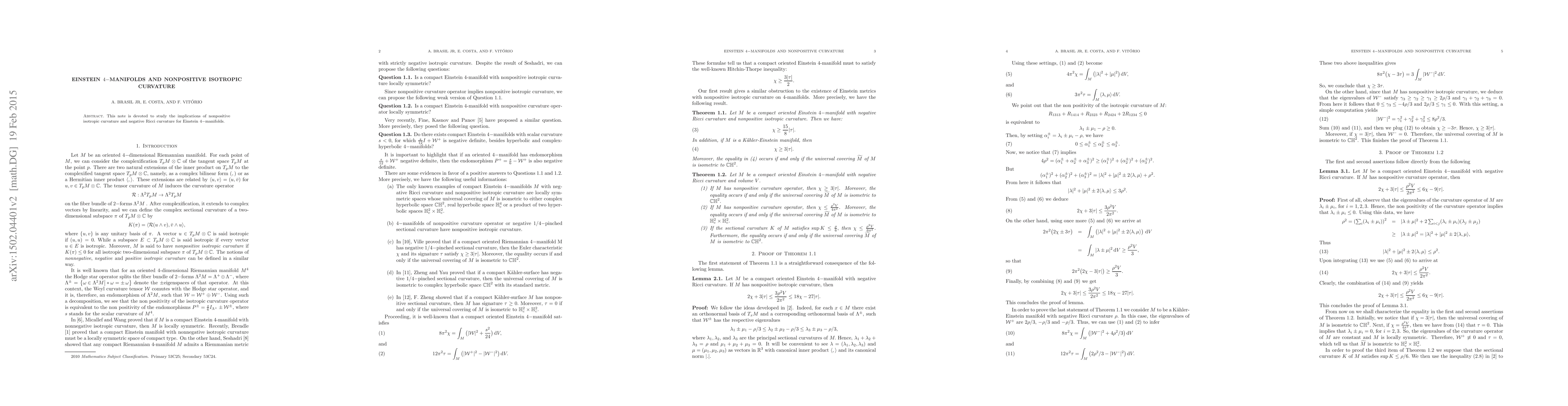 Summary: This paper investigates the geometric and topological implications of nonpositive isotropic curvature and negative Ricci curvature on Einstein 4-manifolds, exploring their structural properties and potential classifications.