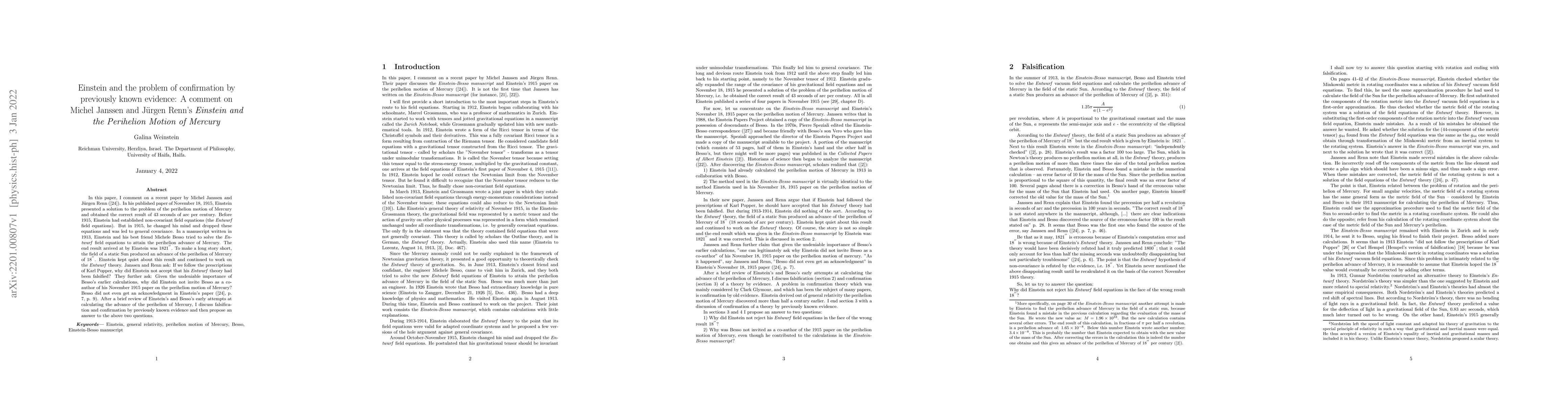 In this paper, I comment on a recent paper by Michel Janssen and J\"urgen Renn. In his published paper of November 18, 1915, Einstein presented a solution to the problem of the perihelion motion of Mercury and obtained the correct result of 43 seconds of arc per century. Before 1915, Einstein had established non-covariant field equations (the Entwurf field equations). But in 1915, he changed his mind and dropped these equations and was led to general covariance. In a manuscript written in 1913, Einstein and his best friend Michele Besso tried to solve the Entwurf field equations to attain the perihelion advance of Mercury. The end result arrived at by Einstein was 1821 seconds of arc per century. To make a long story short, the field of a static Sun produced an advance of the perihelion of Mercury of 18 seconds of arc per century. Einstein kept quiet about this result and continued to work on the Entwurf theory. Janssen and Renn ask: If we follow the prescriptions of Karl Popper, why did Einstein not accept that his Entwurf theory had been falsified? They further ask: Given the undeniable importance of Besso's earlier calculations, why did Einstein not invite Besso as a co-author of his November 1915 paper on the perihelion motion of Mercury? Besso did not even get an acknowledgment in Einstein's paper. After a brief review of Einstein's and Besso's early attempts at calculating the advance of the perihelion of Mercury, I discuss falsification and confirmation by previously known evidence and then propose an answer to the above two questions.