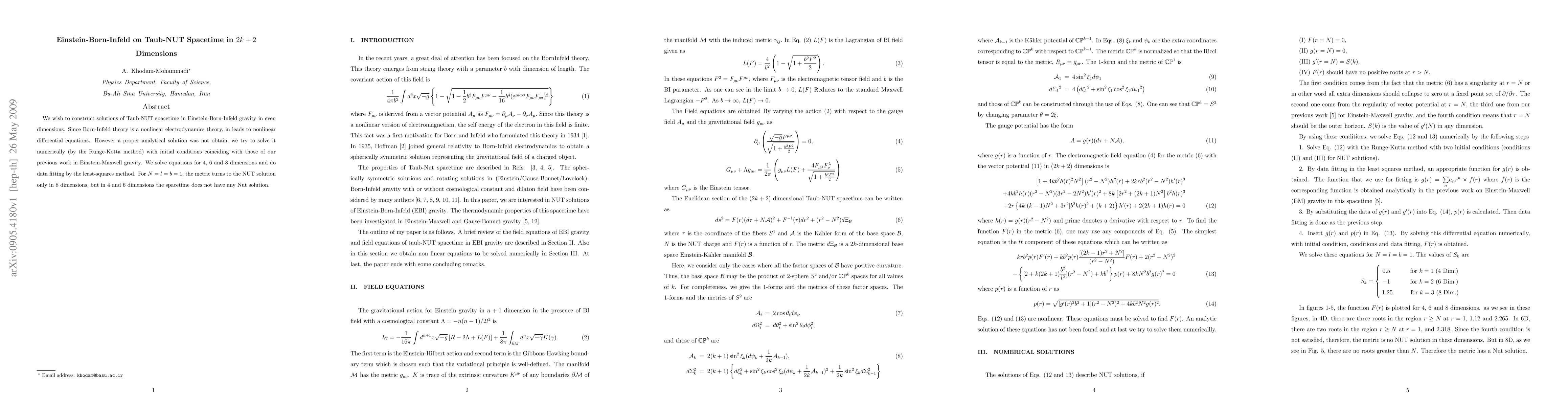Researchers successfully solved non-linear differential equations in Einstein-Born-Infeld gravity for Taub-NUT spacetime in 2k+2 dimensions using numerical methods, with solutions found only in higher dimensions.
