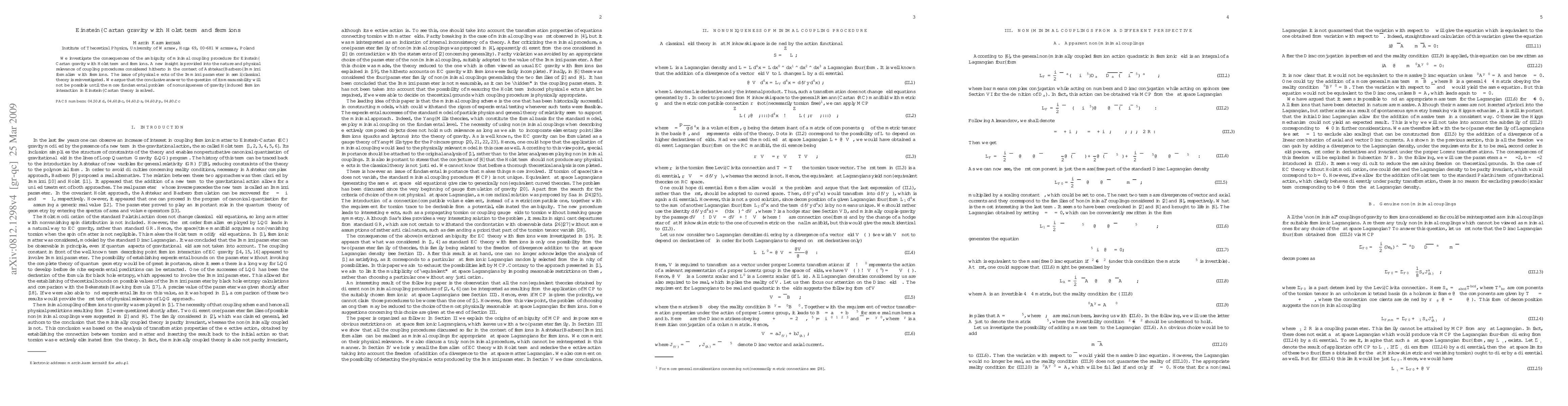 This paper explores the implications of minimal coupling ambiguity in Einstein-Cartan gravity with a Holst term and fermions, providing new insights into the Ashtekar-Barbero-Immirzi formalism. It concludes that resolving the nonuniqueness of gravity-induced fermion interactions is essential before determining the measurability of the Immirzi parameter.