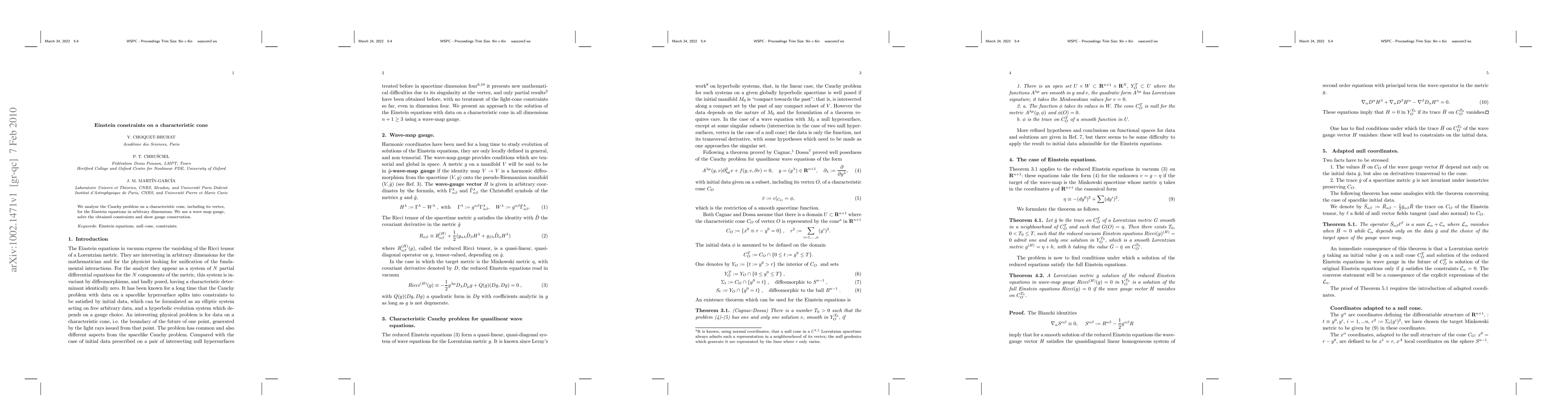 This paper solves the Einstein equations on a characteristic cone using a wave map gauge, finding constraints that show gauge conservation.