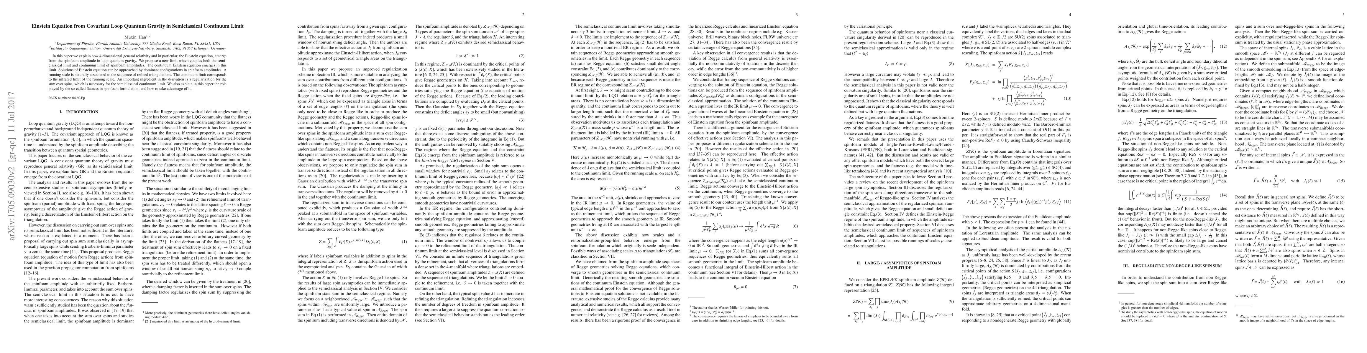This paper demonstrates how the Einstein equation of general relativity emerges from loop quantum gravity's spinfoam amplitude, proposing a novel semiclassical continuum limit. It highlights the significance of a running scale linked to refined triangulations and discusses the regularization of spin sums necessary for the derivation.
