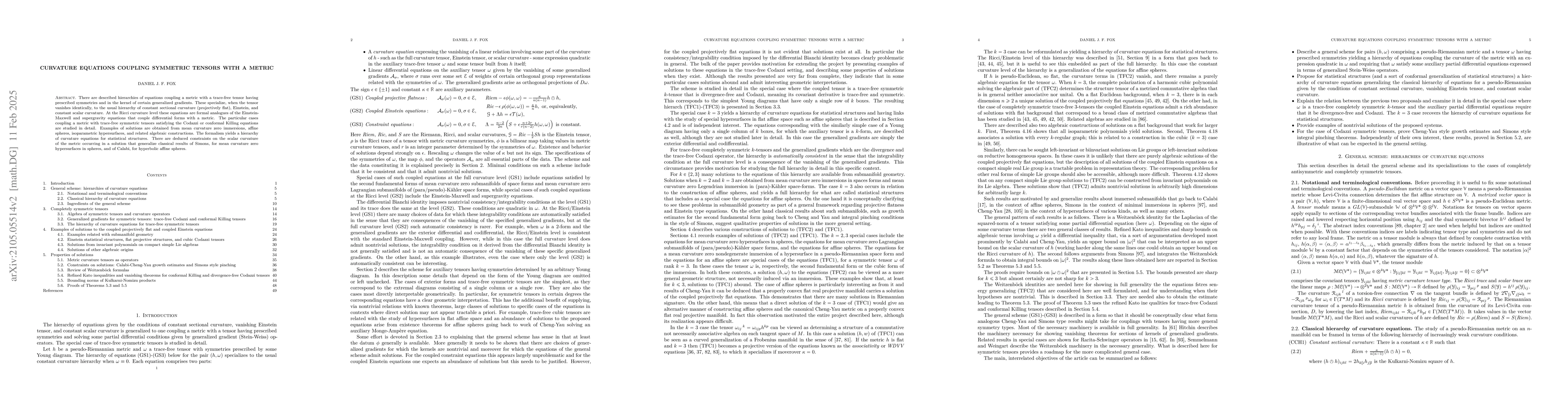 There are described equations coupling a completely symmetric conformal Killing or Codazzi tensor to the Einstein equations for a metric, in a manner analogous to that used to obtain the Einstein-Maxwell equations by coupling a two-form to the metric. Examples of solutions are constructed from mean curvature zero immersions, affine spheres, isoparametric polynomials, and regular graphs. There are deduced some constraints on the scalar curvature of the metric occurring in a solution. Along the way, there are reviewed Weitzenb\"ock formulas, vanishing theorems, and related results for conformal Killing and divergence free Codazzi tensors.