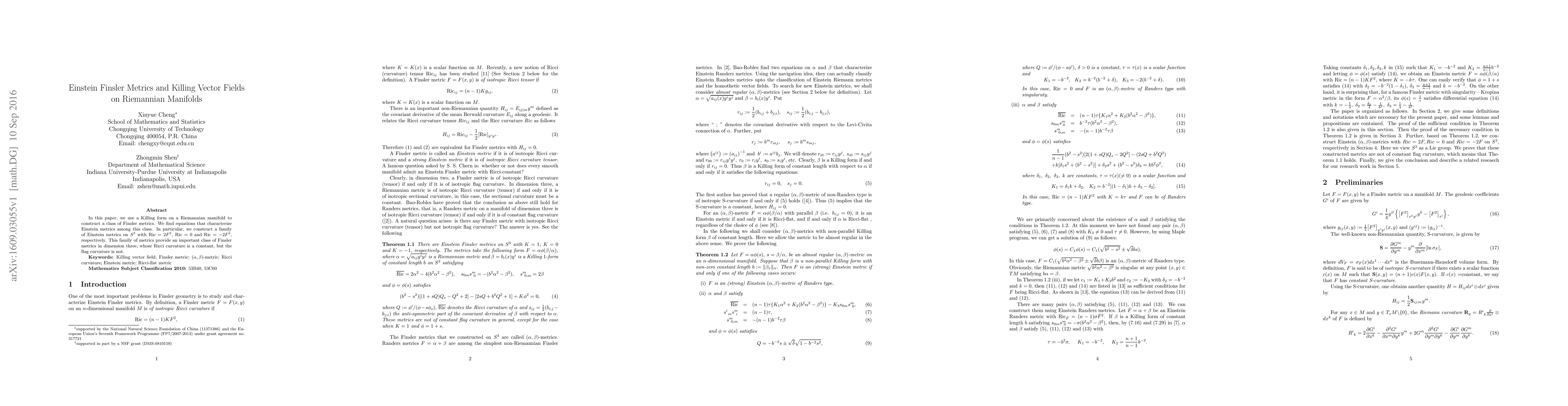 Summary: The paper constructs a class of Finsler metrics on Riemannian manifolds using Killing forms and identifies equations characterizing Einstein metrics within this class. It presents a family of Einstein metrics on $S^3$ with specific Ricci curvature conditions, highlighting their unique curvature properties.