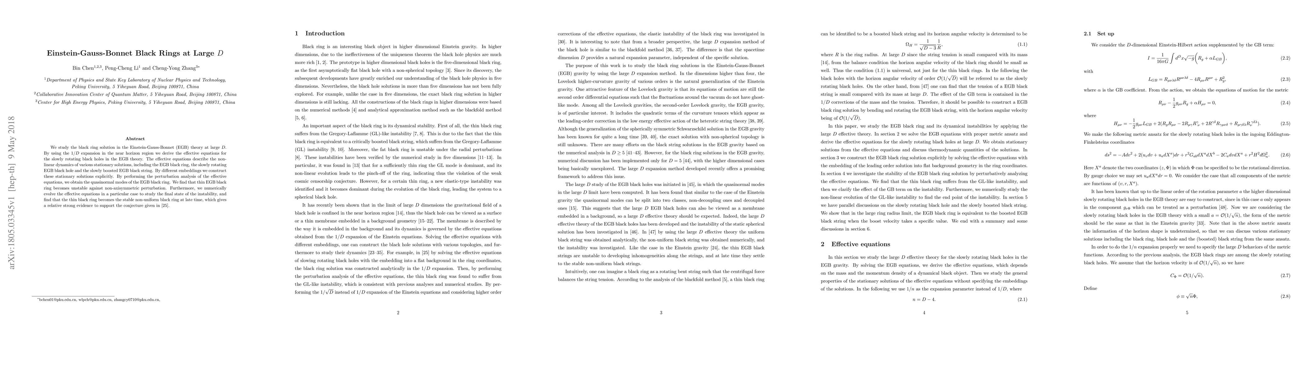 This paper investigates the black ring solution in Einstein-Gauss-Bonnet theory at high dimensions, using a $1/D$ expansion to derive effective equations for slowly rotating black holes. It finds that thin black rings become unstable to non-axisymmetric perturbations, evolving into stable, non-uniform black rings over time.