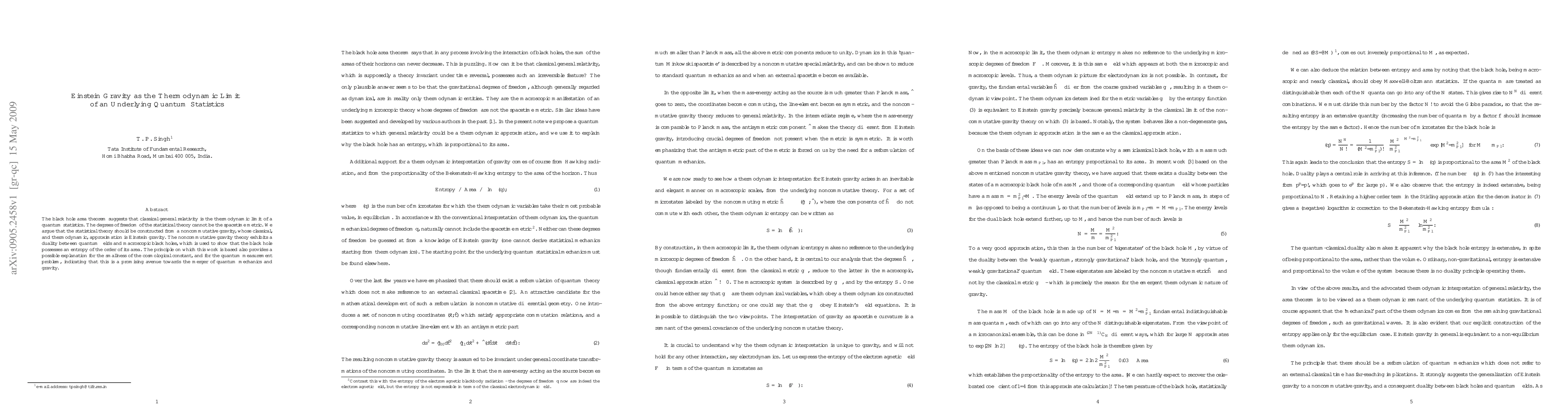 The black hole area theorem suggests that classical general relativity is the thermodynamic limit of a quantum statistics. The degrees of freedom of the statistical theory cannot be the spacetime metric. We argue that the statistical theory should be constructed from a noncommutative gravity, whose classical, and thermodynamic, approximation is Einstein gravity. The noncommutative gravity theory exhibits a duality between quantum fields and macroscopic black holes, which is used to show that the black hole possesses an entropy of the order of its area. The principle on which this work is based also provides a possible explanation for the smallness of the cosmological constant, and for the quantum measurement problem, indicating that this is a promising avenue towards the merger of quantum mechanics and gravity.