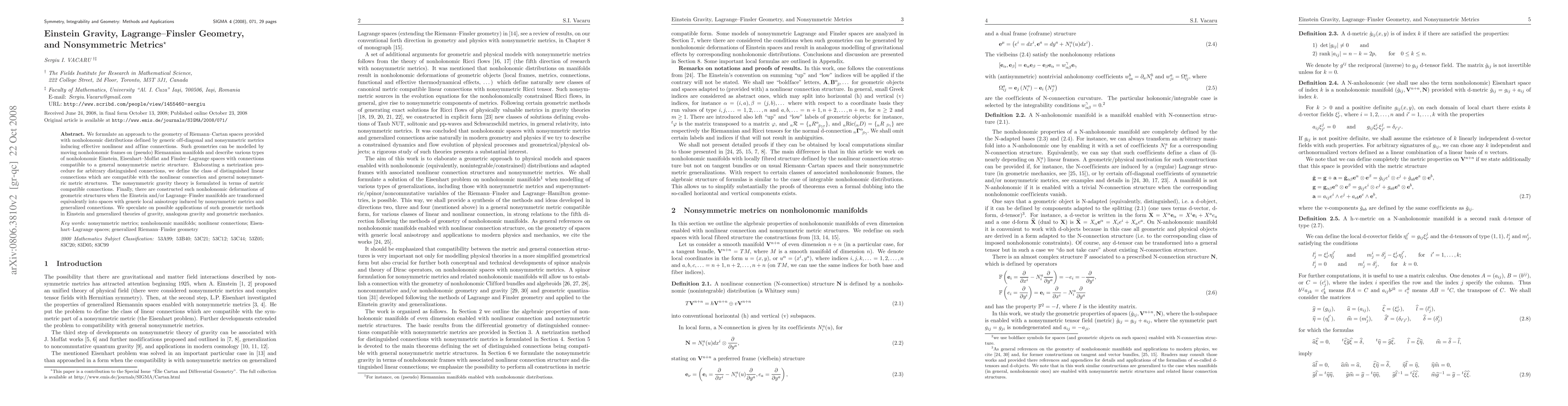 We formulate an approach to the geometry of Riemann-Cartan spaces provided with nonholonomic distributions defined by generic off-diagonal and nonsymmetric metrics inducing effective nonlinear and affine connections. Such geometries can be modelled by moving nonholonomic frames on (pseudo) Riemannian manifolds and describe various types of nonholonomic Einstein, Eisenhart-Moffat and Finsler-Lagrange spaces with connections compatible to a general nonsymmetric metric structure. Elaborating a metrization procedure for arbitrary distinguished connections, we define the class of distinguished linear connections which are compatible with the nonlinear connection and general nonsymmetric metric structures. The nonsymmetric gravity theory is formulated in terms of metric compatible connections. Finally, there are constructed such nonholonomic deformations of geometric structures when the Einstein and/or Lagrange-Finsler manifolds are transformed equivalently into spaces with generic local anisotropy induced by nonsymmetric metrics and generalized connections. We speculate on possible applications of such geometric methods in Einstein and generalized theories of gravity, analogous gravity and geometric mechanics.